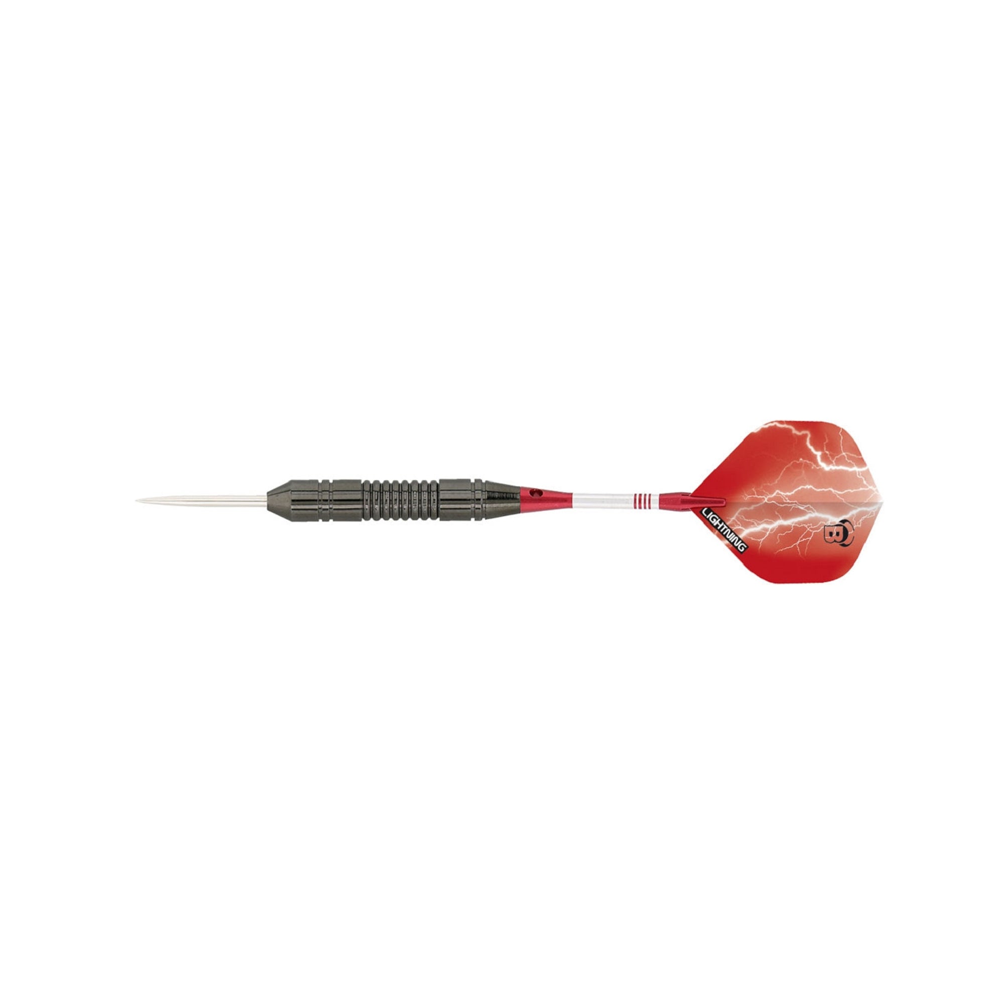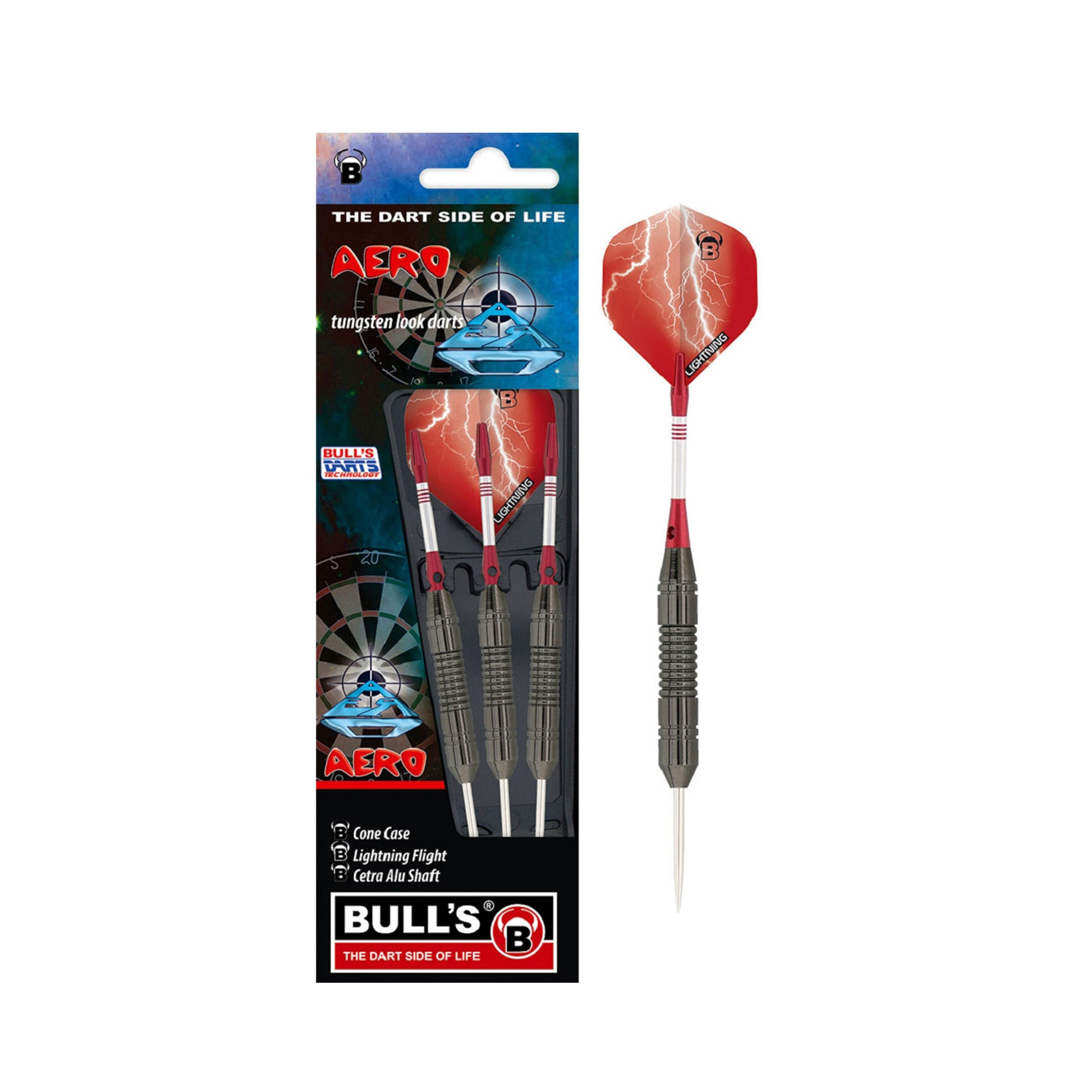 The brass Aero with its dark chrome coating is the beautiful entry-level dart in tungsten design. The barrel has a good grip and is available in two different weights. In the handy BULL'S Cone Case with Cetra aluminum shafts and Lightning Flights.