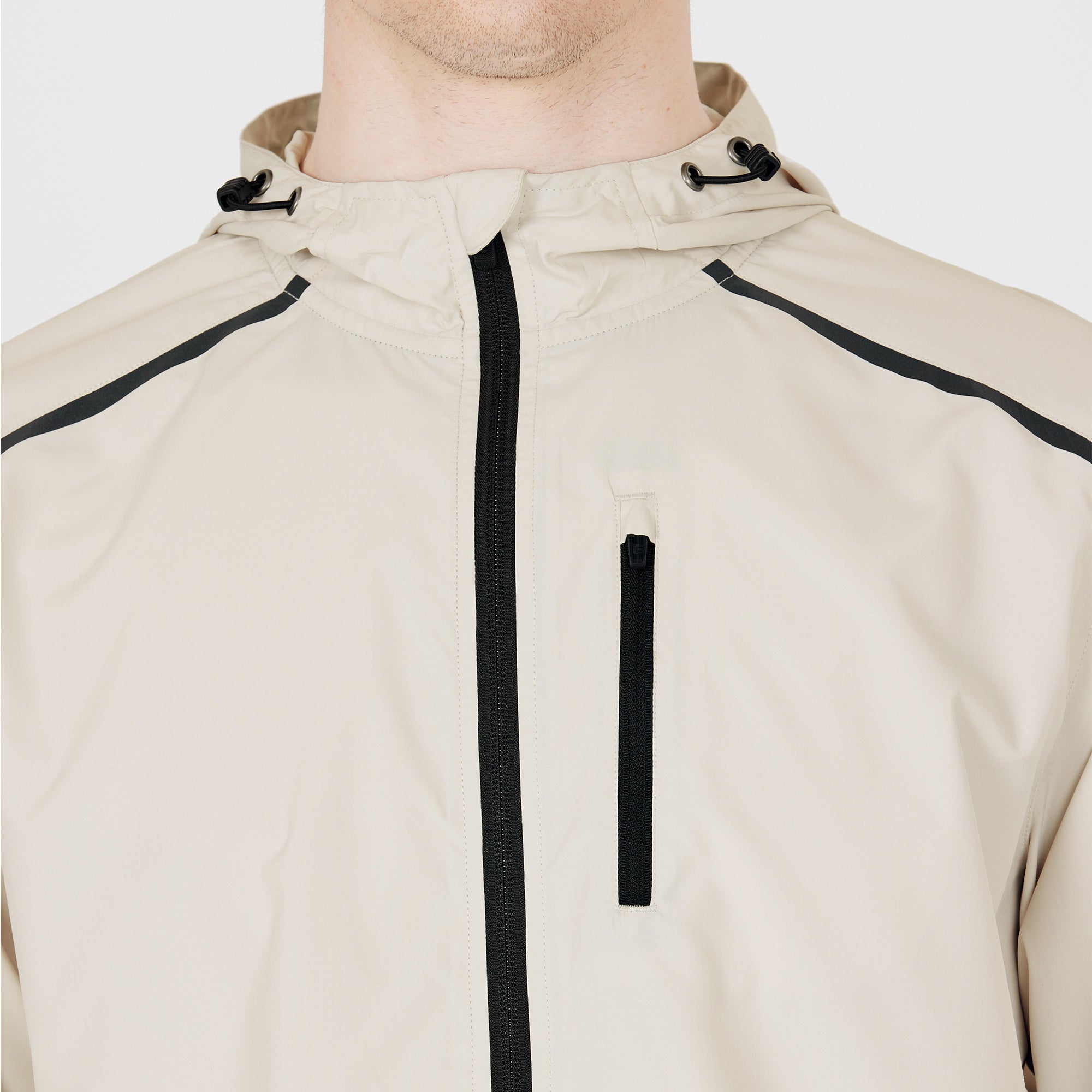 To close it, simply use the covered zip. Its design is defined by a two-tone contrast and a breast pocket, a front pocket and a zip pocket. Polyester was used in the manufacture of the running jacket.