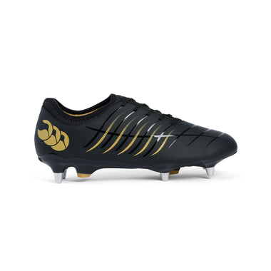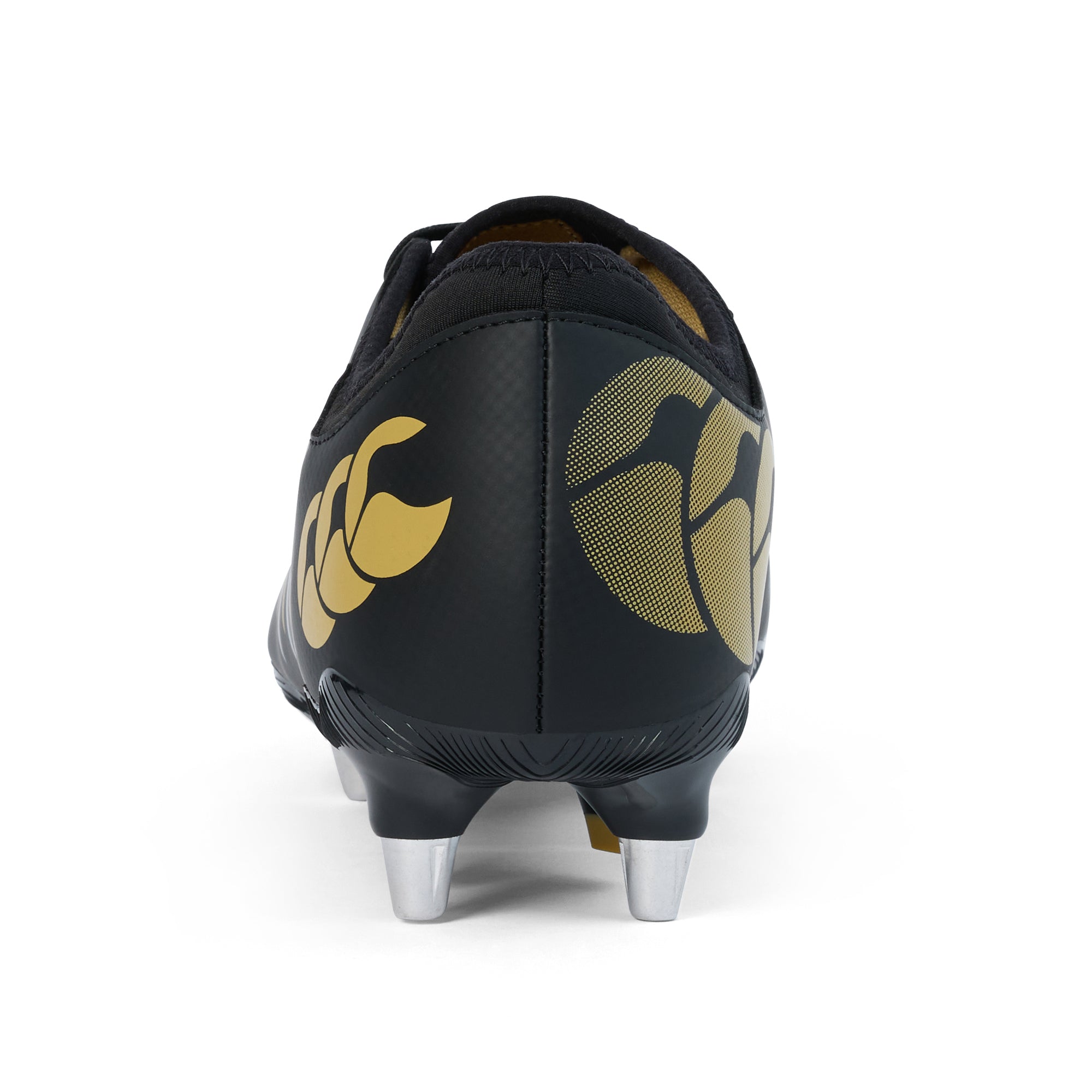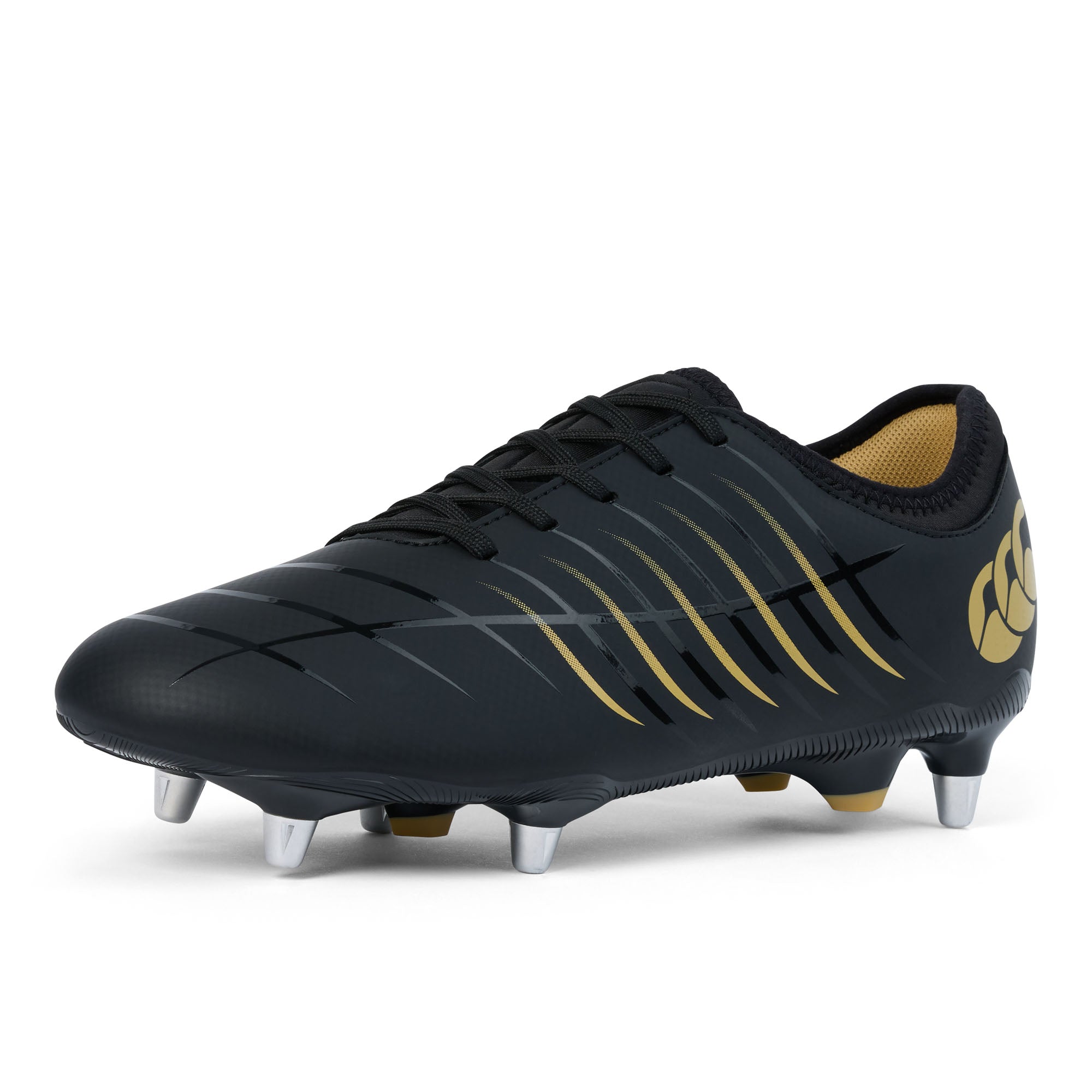 Rugby approved six metal studs combine with rhombus shaped moulded studs, for unrivalled traction.