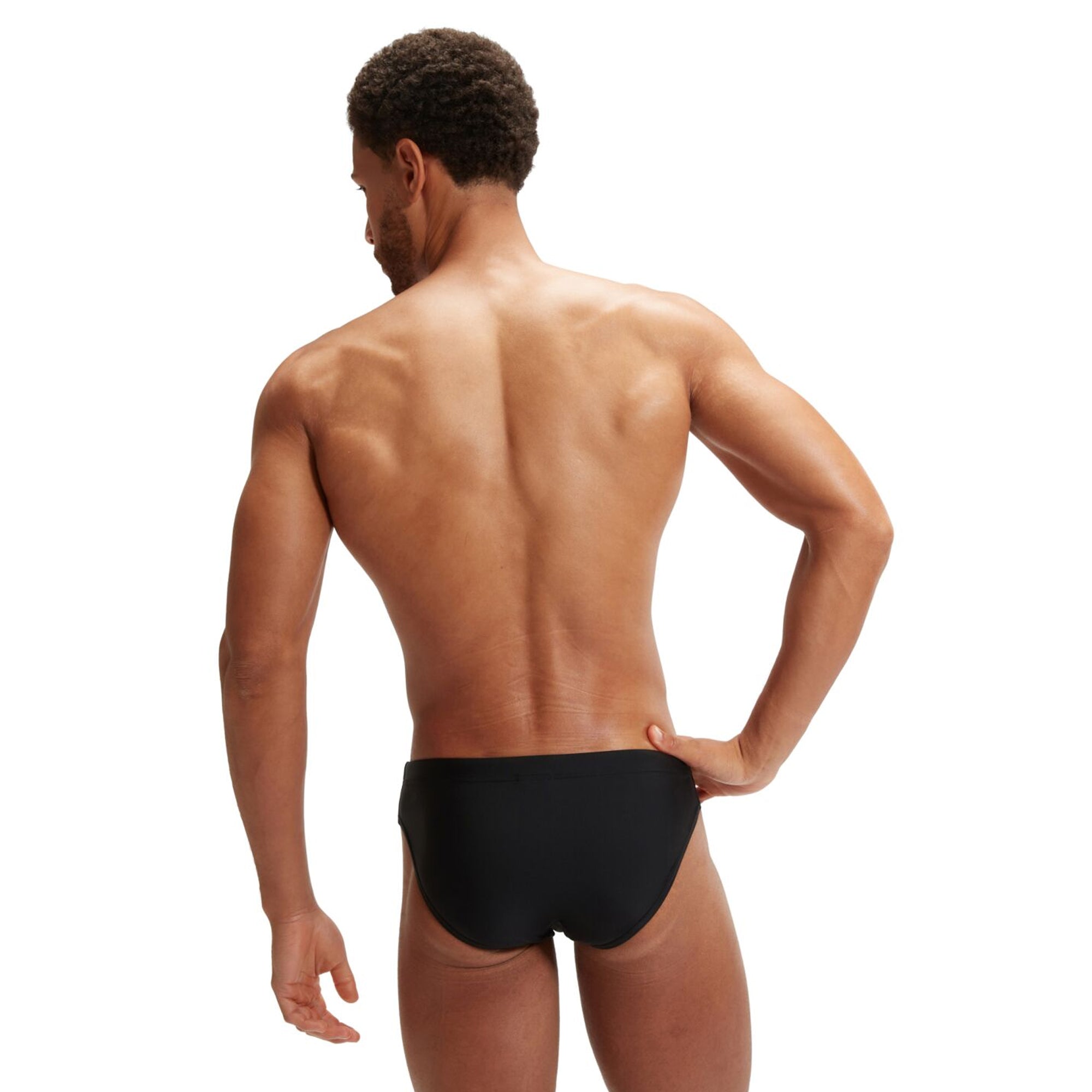 Feel comfortable during training wearing the black Men's Medley Logo 7cm Swim Brief, featuring a drawstring waist and a subtle kinetic wave print design.