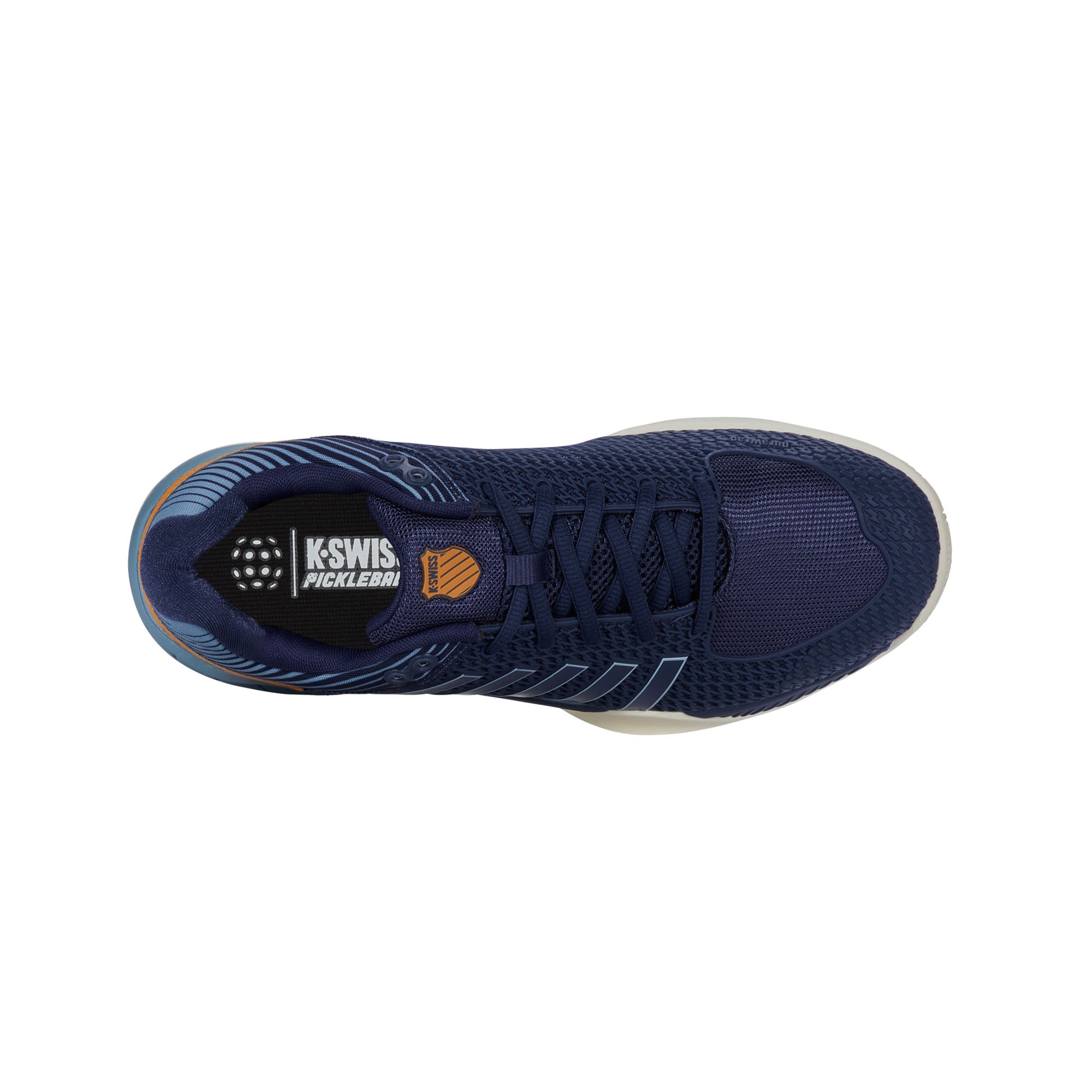 A K-EVA midsole and 180-degree Plantar Support Chassis deliver stability and responsiveness, while the Aosta rubber outsole with DragGuard ensures lasting durability. Complete with the K-Swiss Pickleball logo and custom sock liner, it blends style and performance to elevate your game.