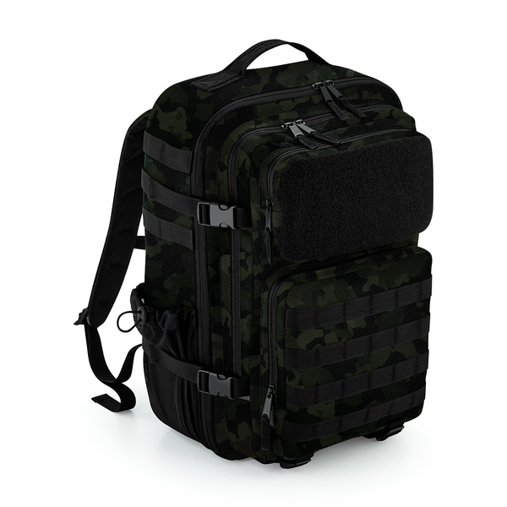 The MOLLE Tactical 35L Backpack by Bagbase offers a military-inspired design with MOLLE webbing loop detail and a spacious main compartment. Equipped with a padded laptop compartment and multiple pockets, this backpack is both functional and stylish.
