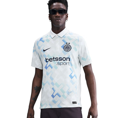 Inter Milan's 2025/26 Away kit honours the club's founding principles of inclusion and diversity. The interlocking, textile-inspired pattern was designed as a visual representation of craft, community and collective strength.