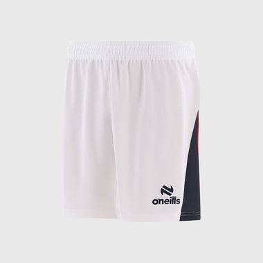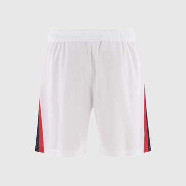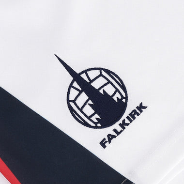 These Falkirk 25/26 Home Kids Football Shorts feature a timeless white design accented with navy and red highlights, creating a bold and spirited appearance.