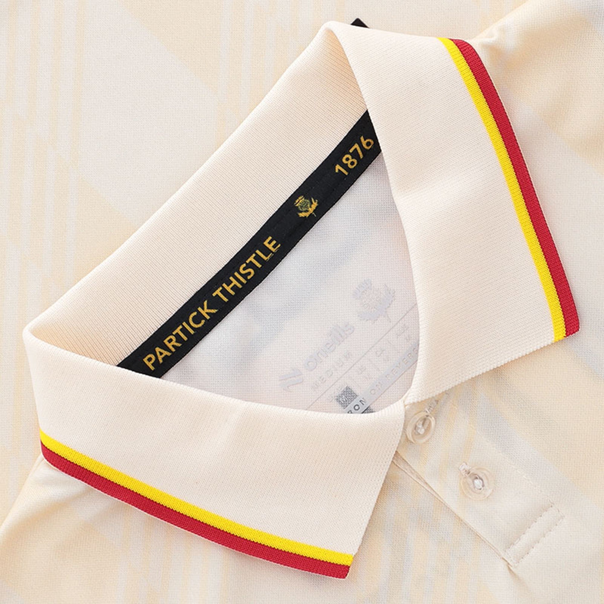 The Partick Thistle 25/26 Away Football Shirt for juniors is a creamy delight with a classic collar, ideal for young Jags fans eager to showcase their team pride with flair.
