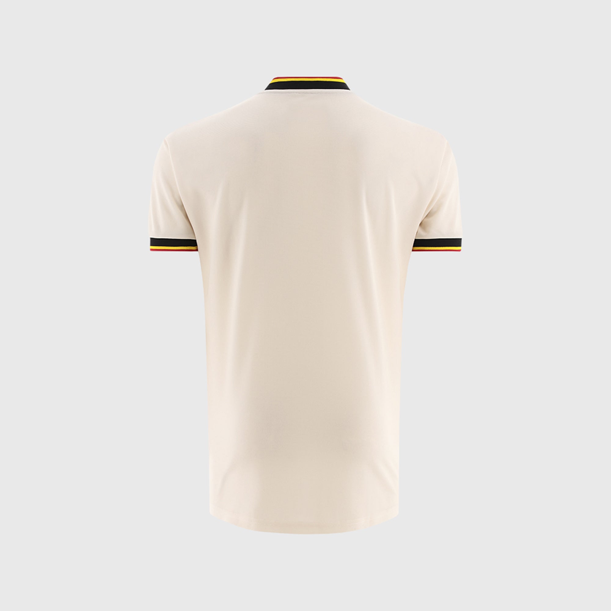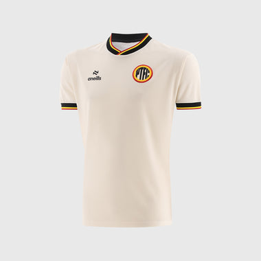 The Partick Thistle 25/26 Matchday Football Jersey Junior features a cream base with vibrant black, red, and yellow accents on the collar and sleeves, delivering a bold and authentic team style.