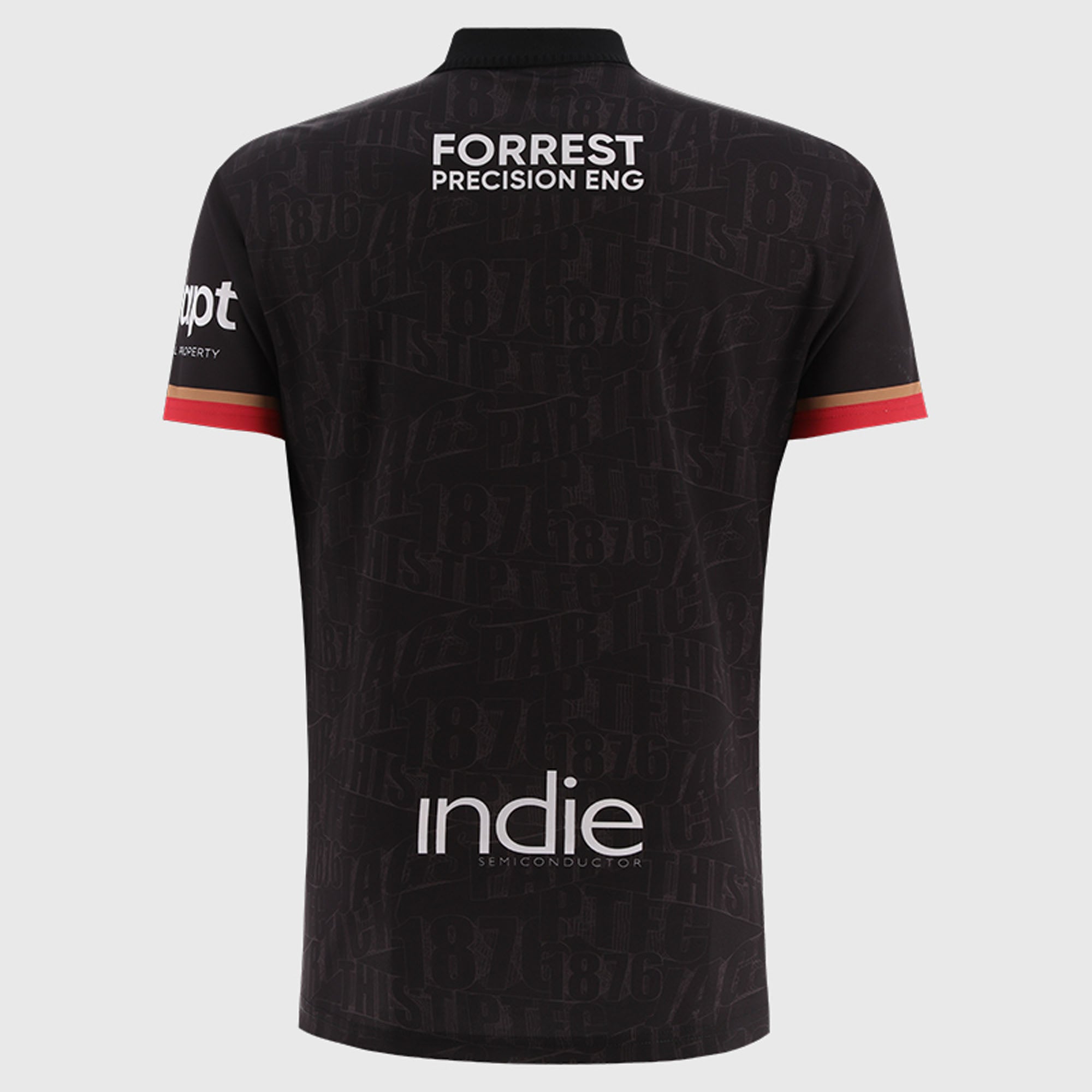Designed for adults, this striking black and red shirt features a durable silicone badge that stands out on the pitch or off.