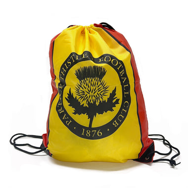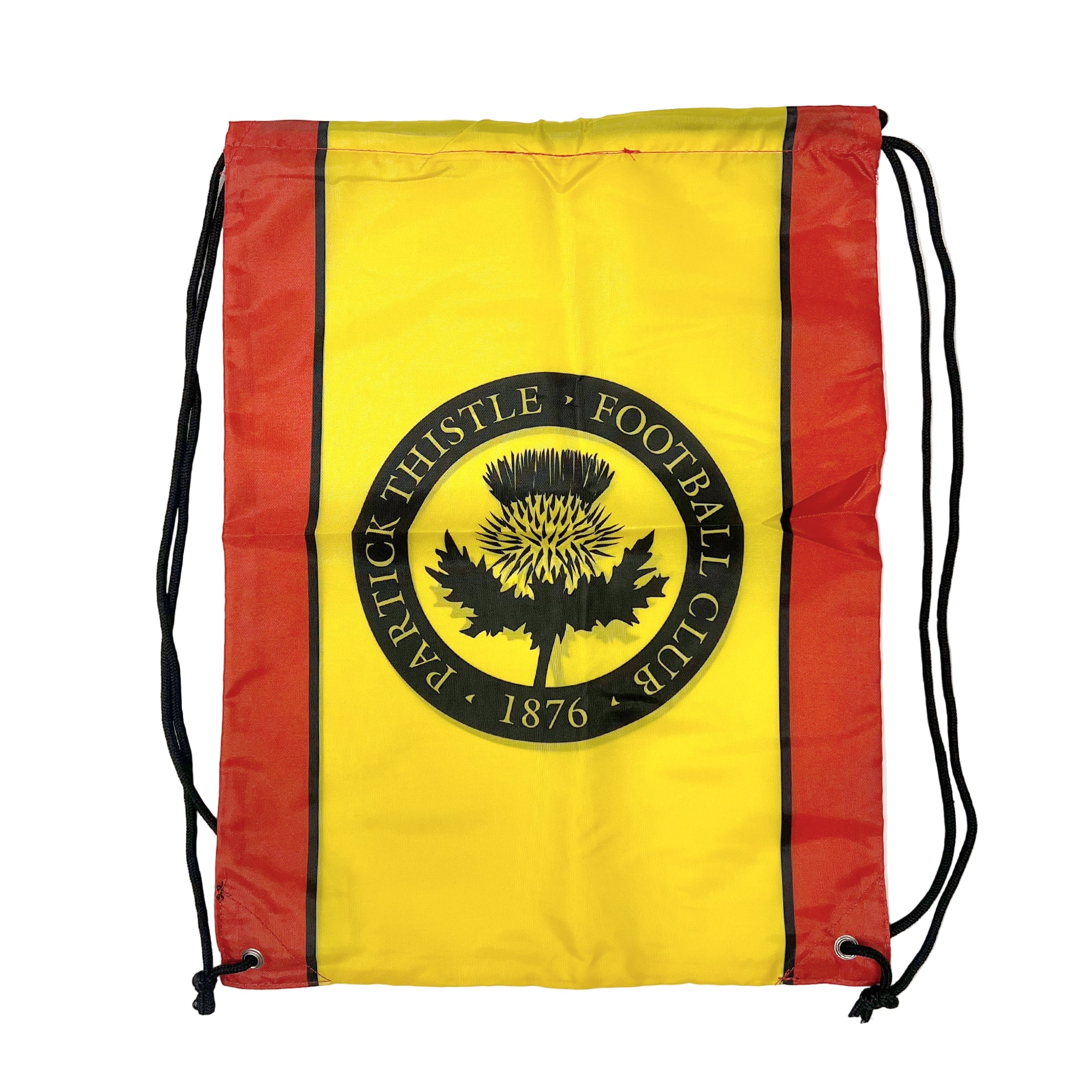 Demonstrate your loyalty to Partick Thistle with this durable drawstring bag, proudly displaying the club emblem.