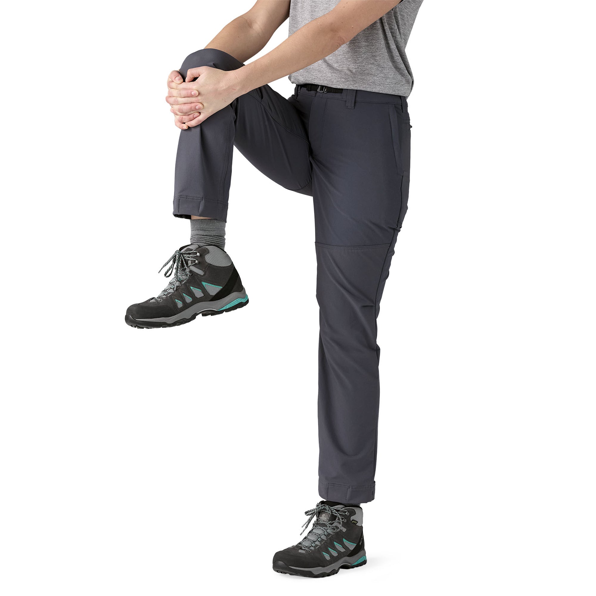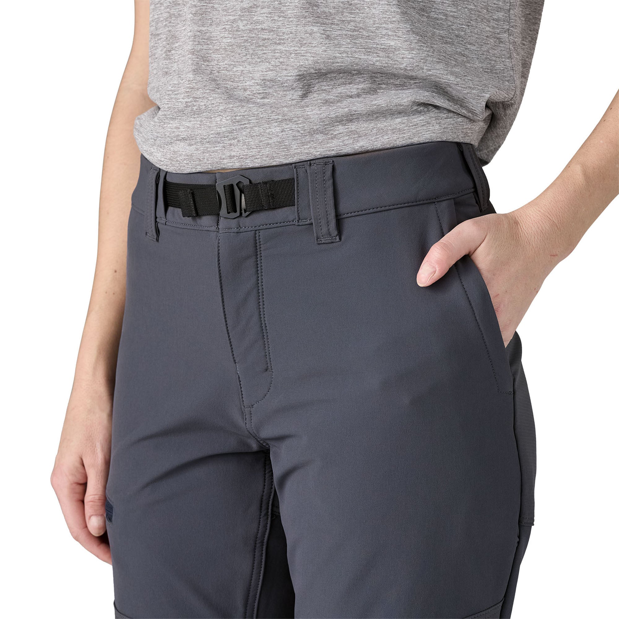 Gusseted crotch and prominent knee articulation for freedom of movement; designed for a sleek fit under a backpack waistbelt or a harness