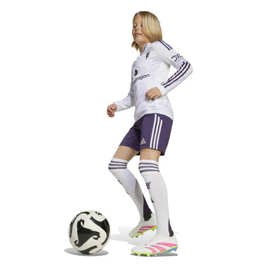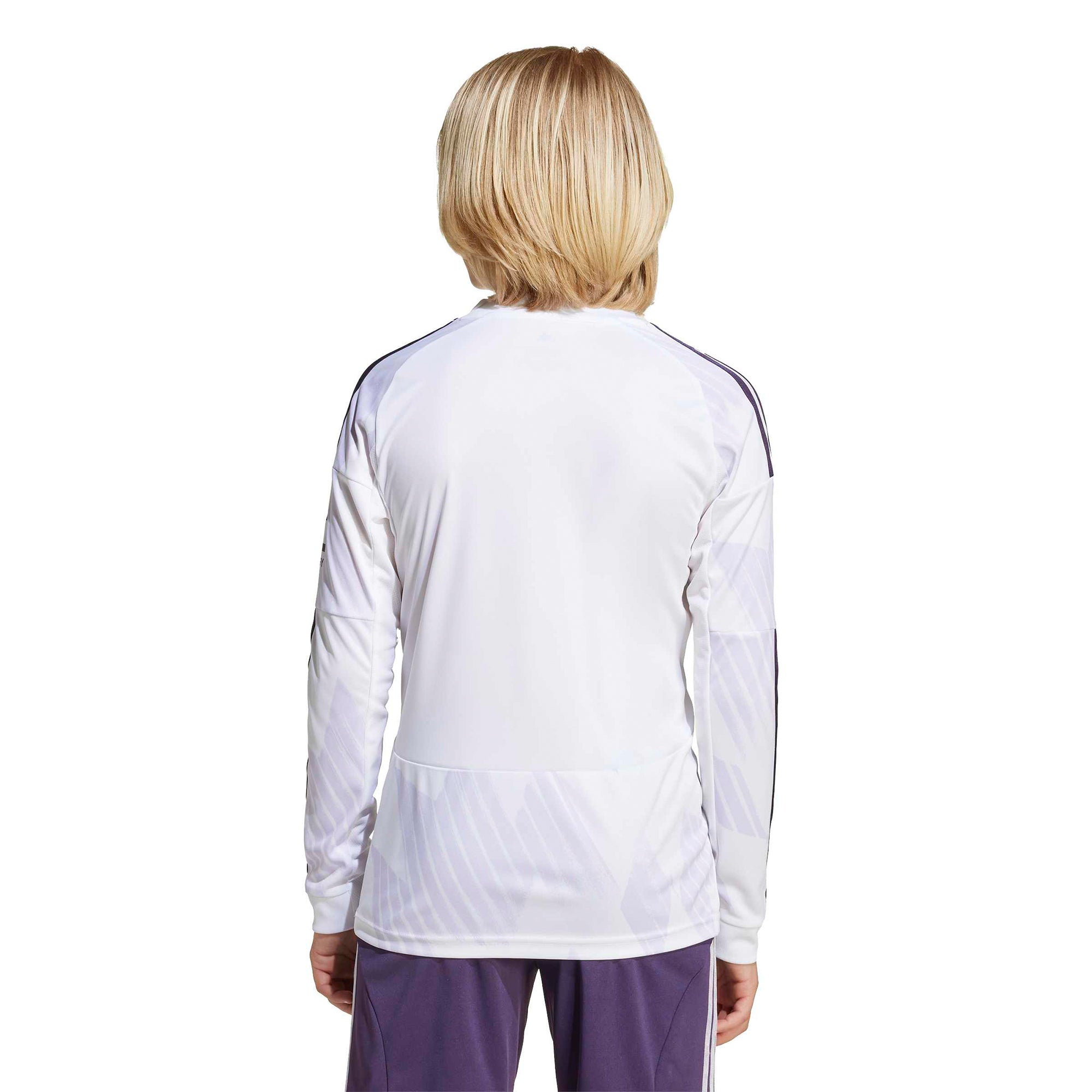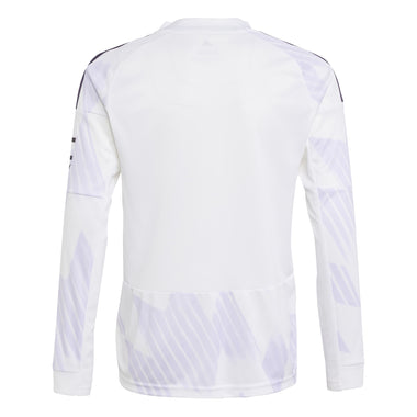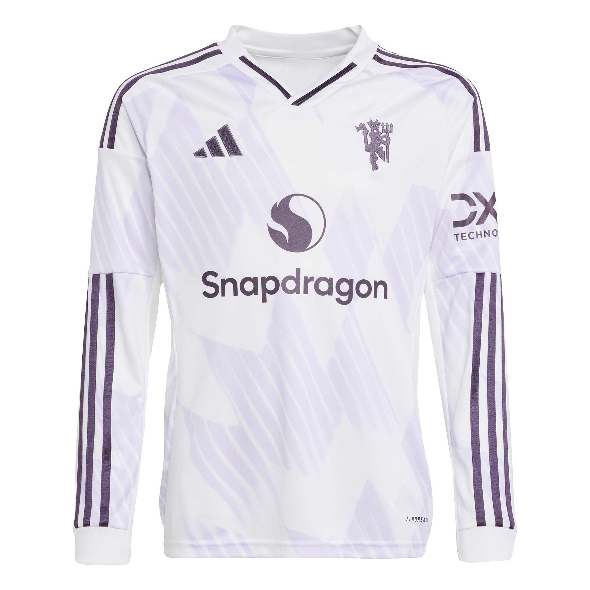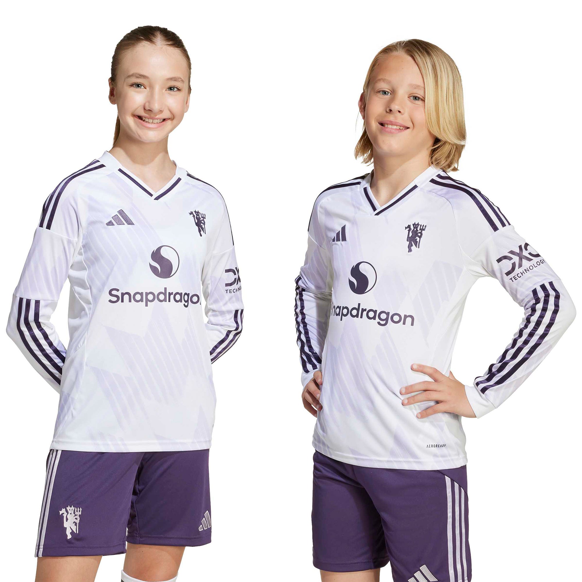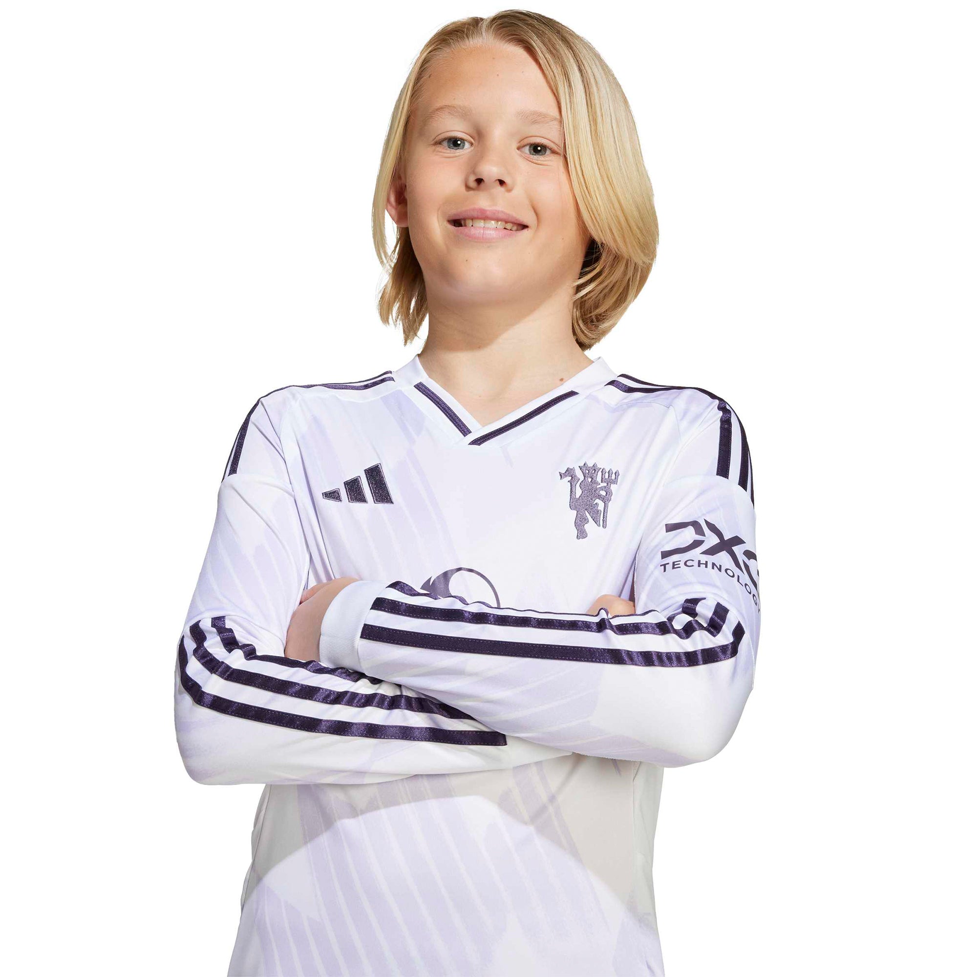 It won't take fans long to see the influence of the club's early-'90s adidas snowflake kit on this juniors' jersey. What are new, though, are those flashes of purple and lilac, and the metallic finish that gives the red devil badge extra lustre. This comfortable long sleeve shirt employs moisture-managing AEROREADY so fans can stay focused on the football.