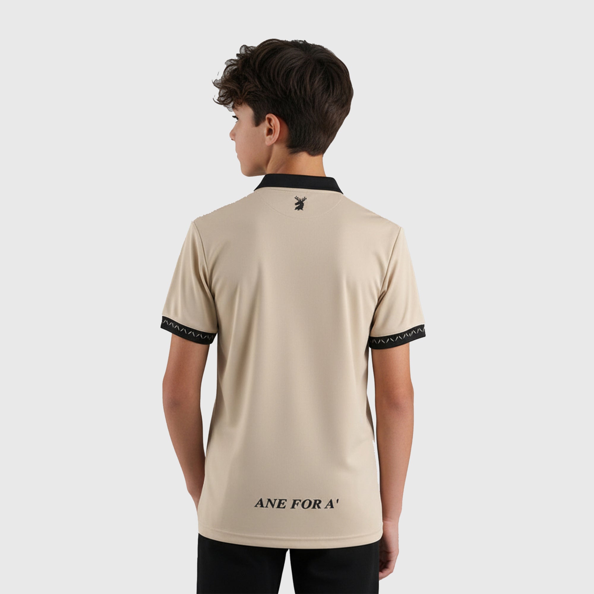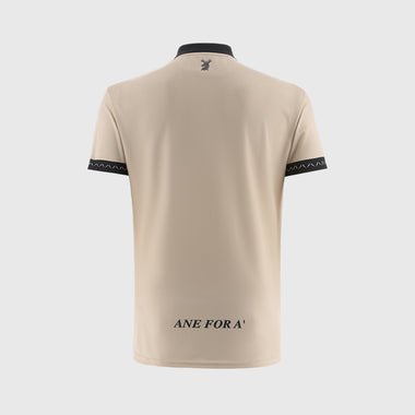Dressed in gorgeous golden beige with charcoal grey touches, this jersey is packed with character – from the eye-catching modernised steeple crest to the bold stag's head and the rallying cry "Ane for A'" emblazoned on the back.