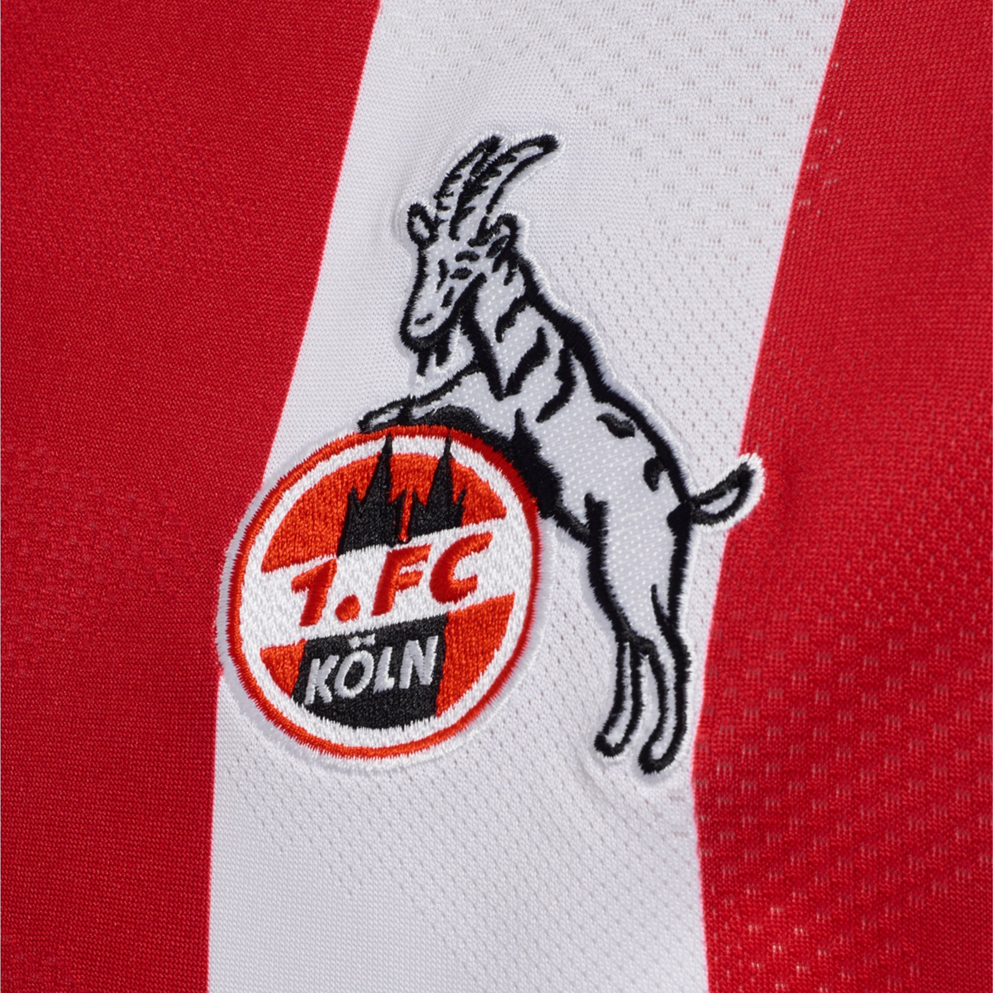 Celebrating tradition with bold red-and-white stripes front and back, the 1. FC Köln 25/26 home jersey is crafted from 100% recycled polyester and features a camo-inspired jacquard knit.