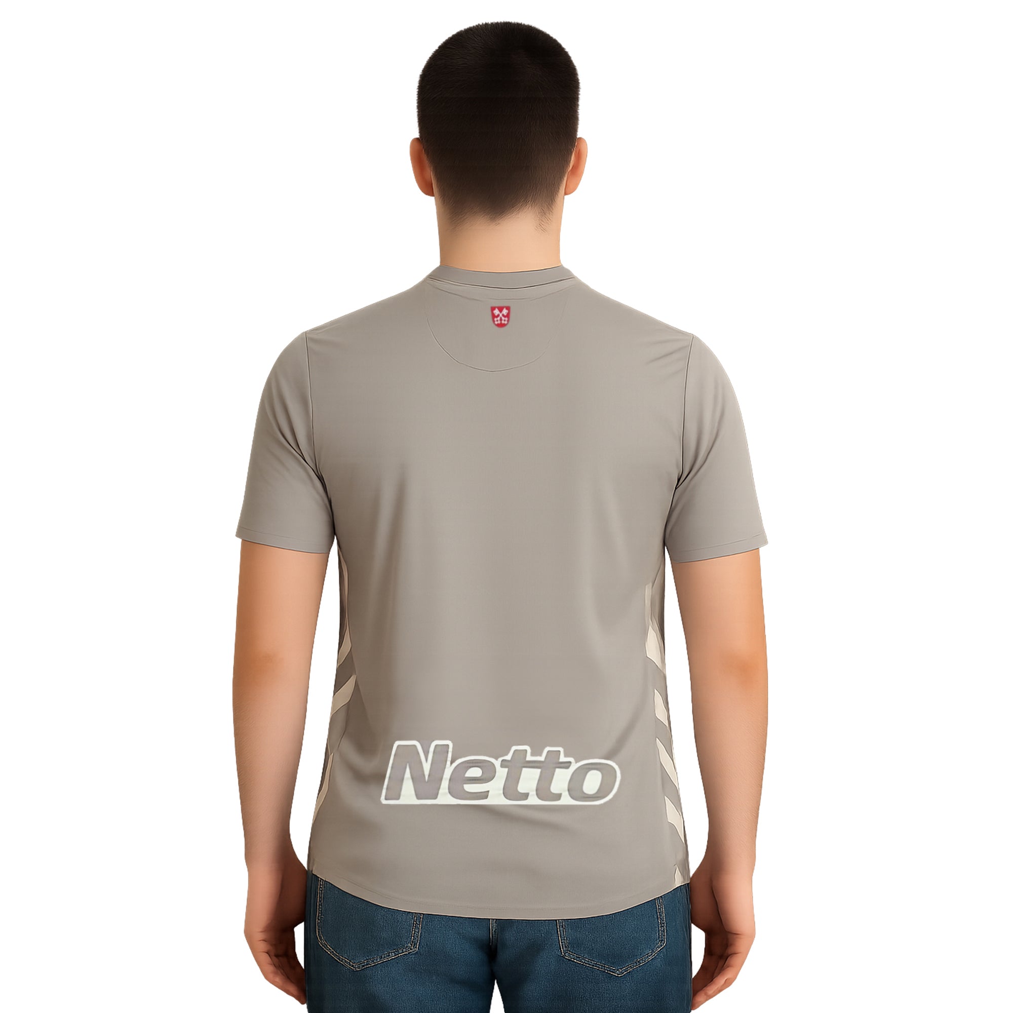 The Jahn Regensburg 25/26 3rd Football Shirt features a sleek light grey shade inspired by the concrete steps of the Hans Jakob Tribüne.
