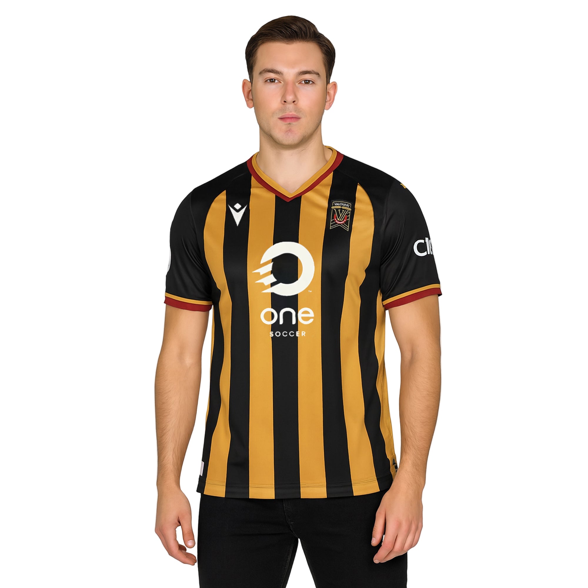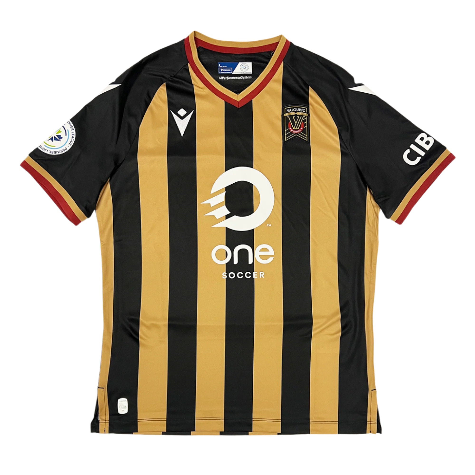 Featuring a striking gold and black striped design, this jersey embodies the spirit and passion of the Canadian Premier League. Get yours today and show your support for your favourite CPL team.