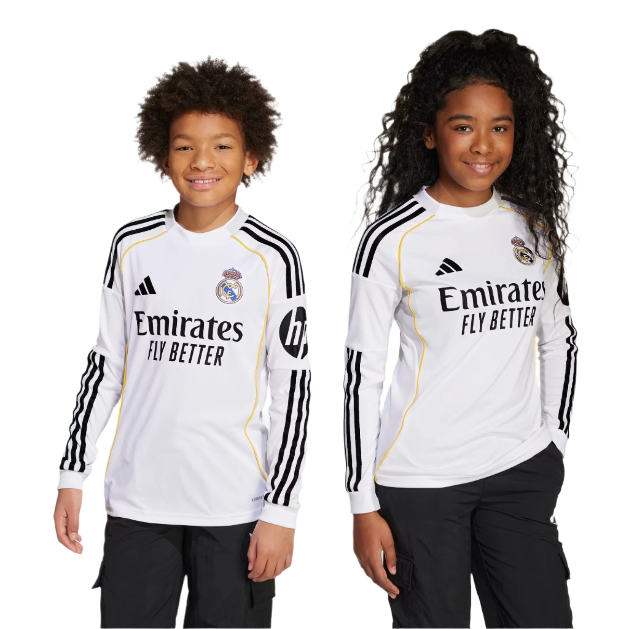 This juniors' adidas Real Madrid home jersey marks the Bernabéu's latest refurbishment with a design featuring subtle shapes, textures and colours borrowed from its long and storied history.