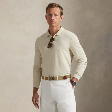 This Polo shirt unites moisture-wicking properties with stretch cotton mesh for all-day comfort. For a double dose of signature style, it features both the RLX logo as well as the signature Pony.