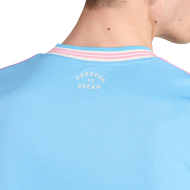 Broken only by waves of subtle pinstripes and pops of pink, the ocean-blue colours of this third shirt bring a calming elegance. Sewn onto the soft fabric, a club badge and adidas Trefoil add extra appeal. Moisture-managing AEROREADY ensures it feels pretty special too.