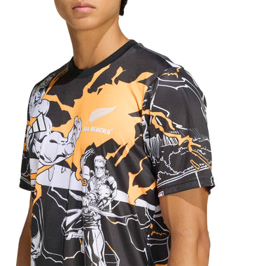 The heroes of rugby and comic books unite in the All Blacks Marvel Captains Run jersey.