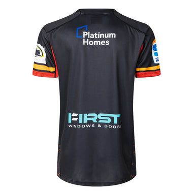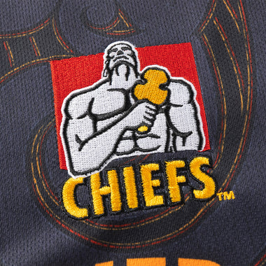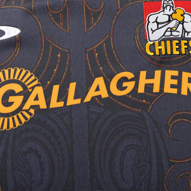 Unleash your passion on the field with the iconic Chiefs 2025 Home Rugby Shirt. This black rugby jersey features a traditional Maori design, proudly showcasing the team's heritage.