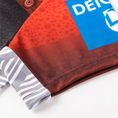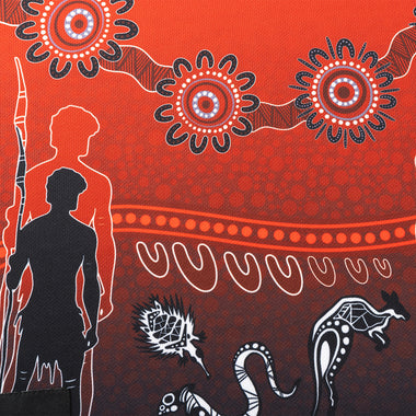 Featuring artwork by Kane Wright, this jersey honours the six Dharawal seasons through symbolic meeting places and animals, reflecting the vital roles of men and women in nurturing the land and culture.