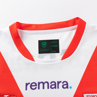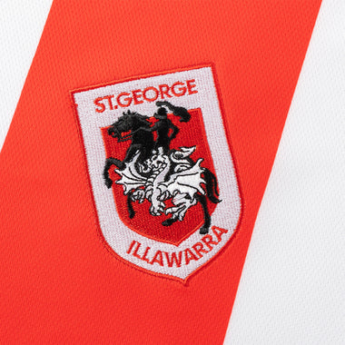Support the St George Dragons with style in the 2025 NRL Home Jersey. This iconic red and white jersey boasts the traditional Red V and represents pride and loyalty. It's the perfect choice for fans who want to show their team spirit both on and off the field, combining classic design with modern performance features.