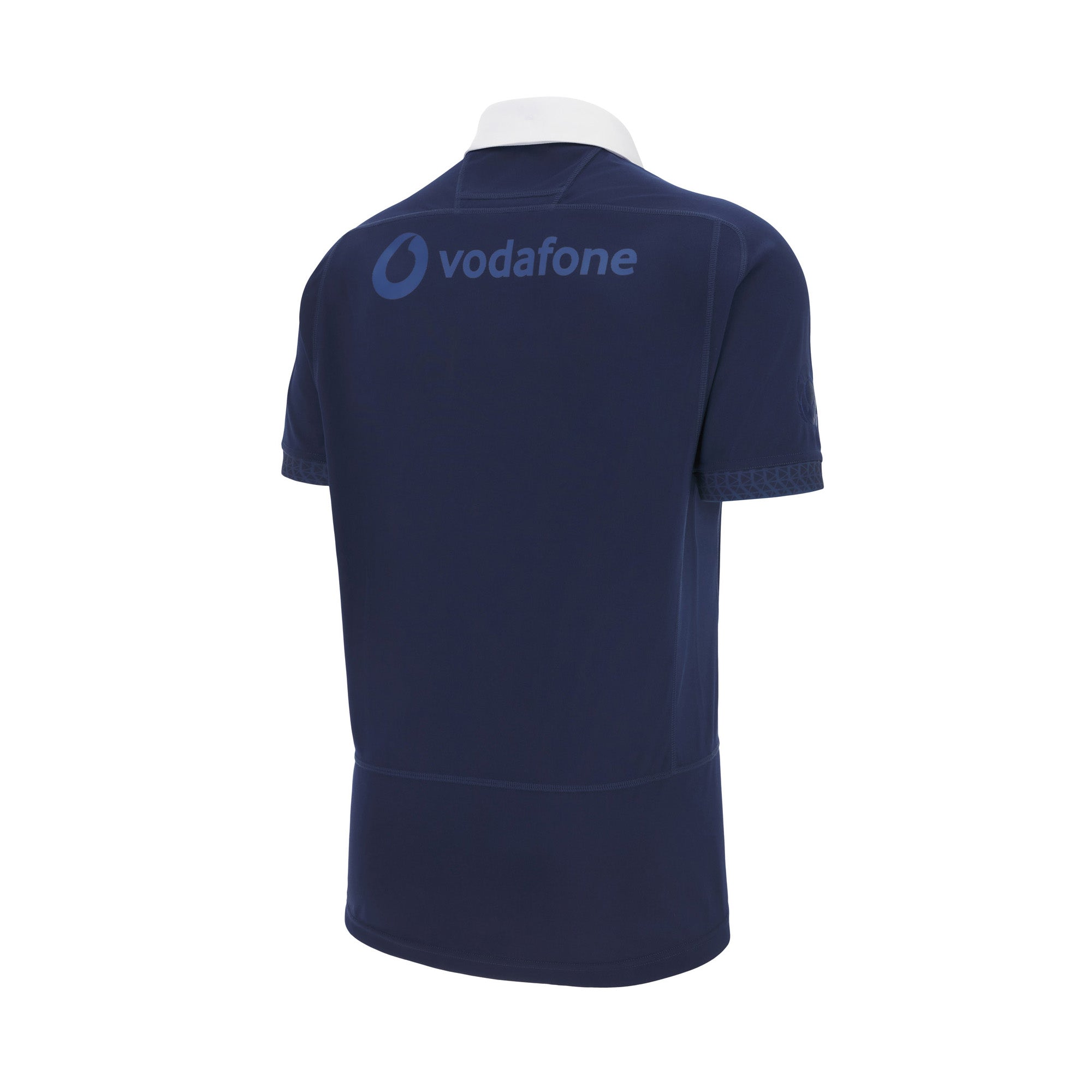This shirt also features the current thistle on one sleeve and an embroidered tribute to the 100th anniversary of Murrayfield Stadium on the other.