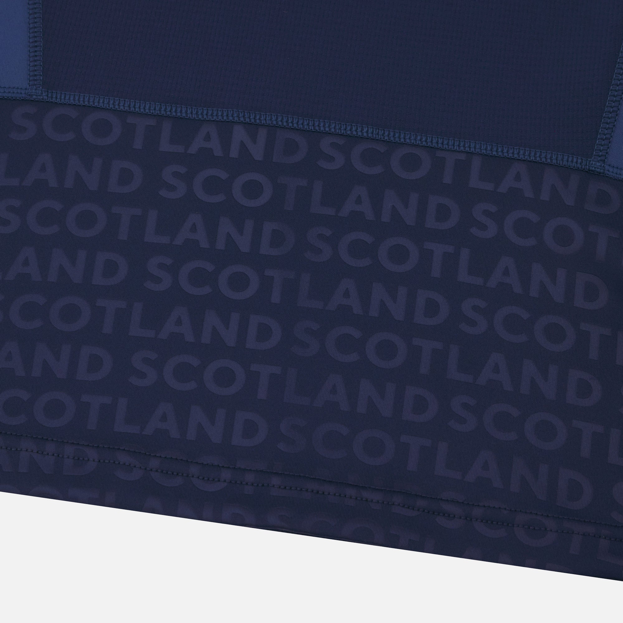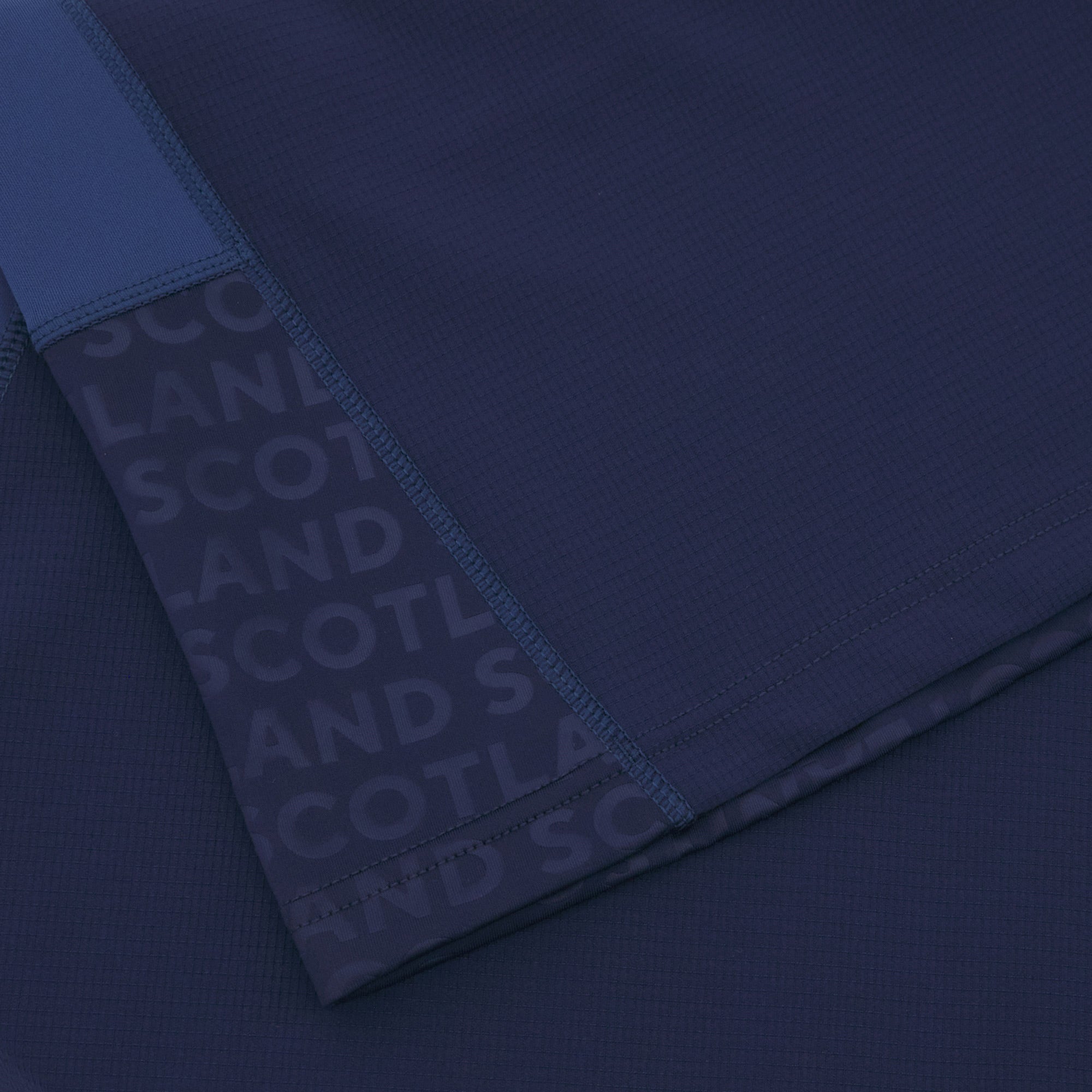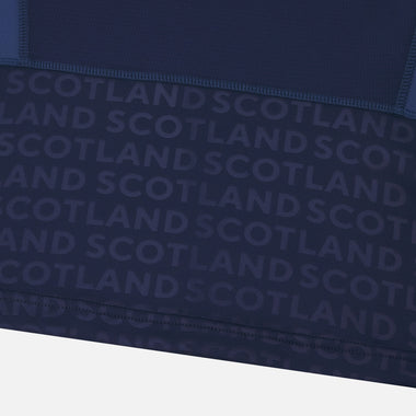 2025/26 home replica slim fit shirt - navy relaxed fit shirt with embossed soundwave pattern over the shoulders, round collar with purple details and white Scotland crest embroidered over the heart.