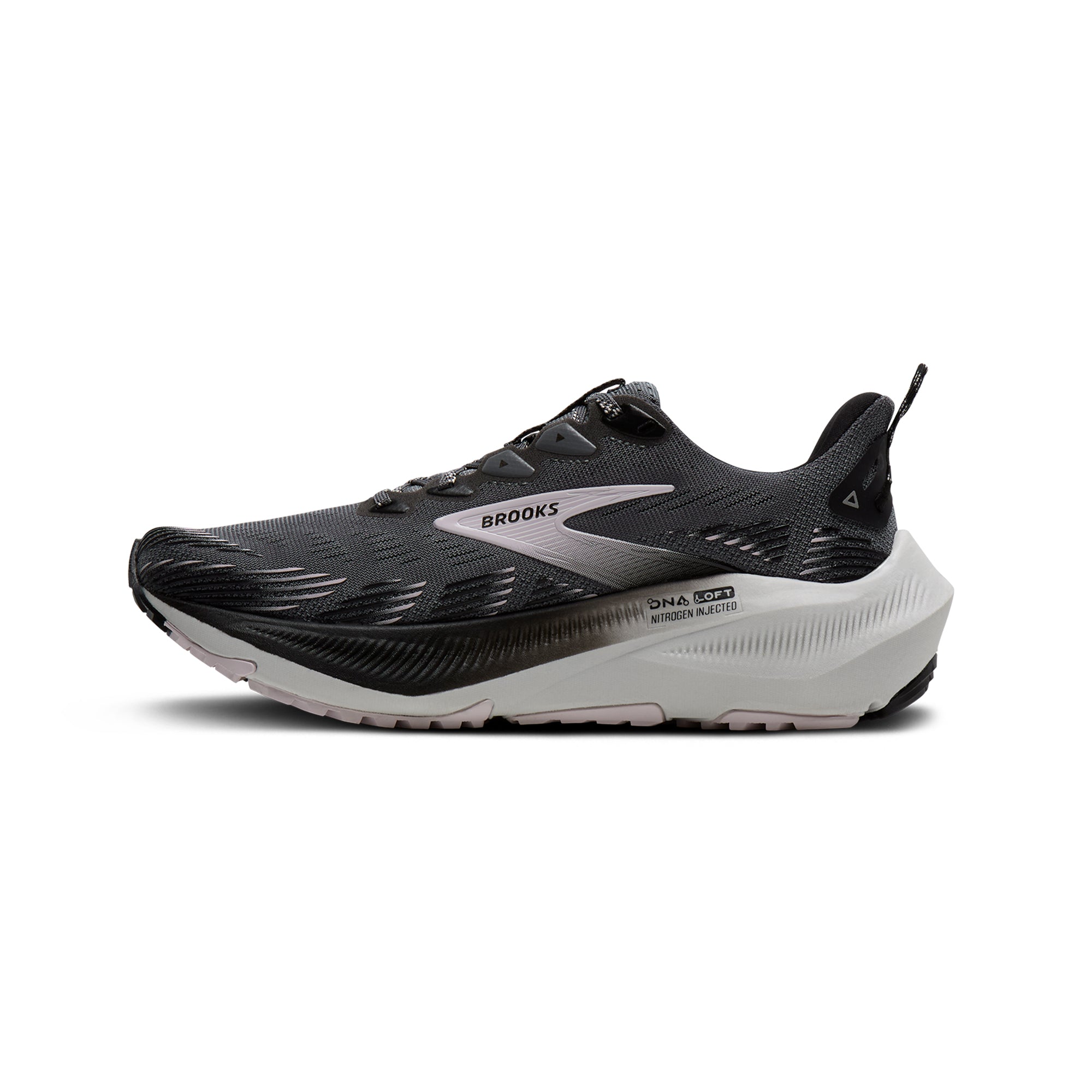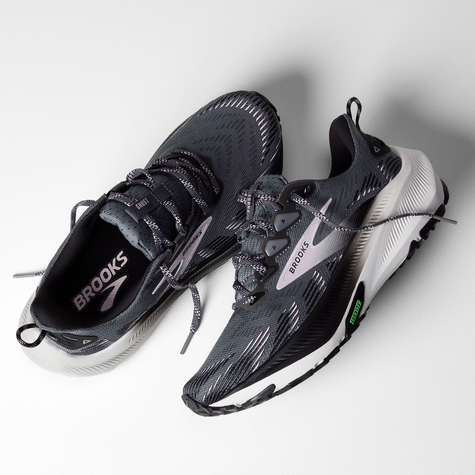 Feel confident venturing off-road in the women's Ghost Trail shoe. Brook's versatile new shoe is a hybrid that delivers cross-terrain features for trail and road.