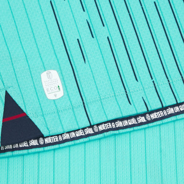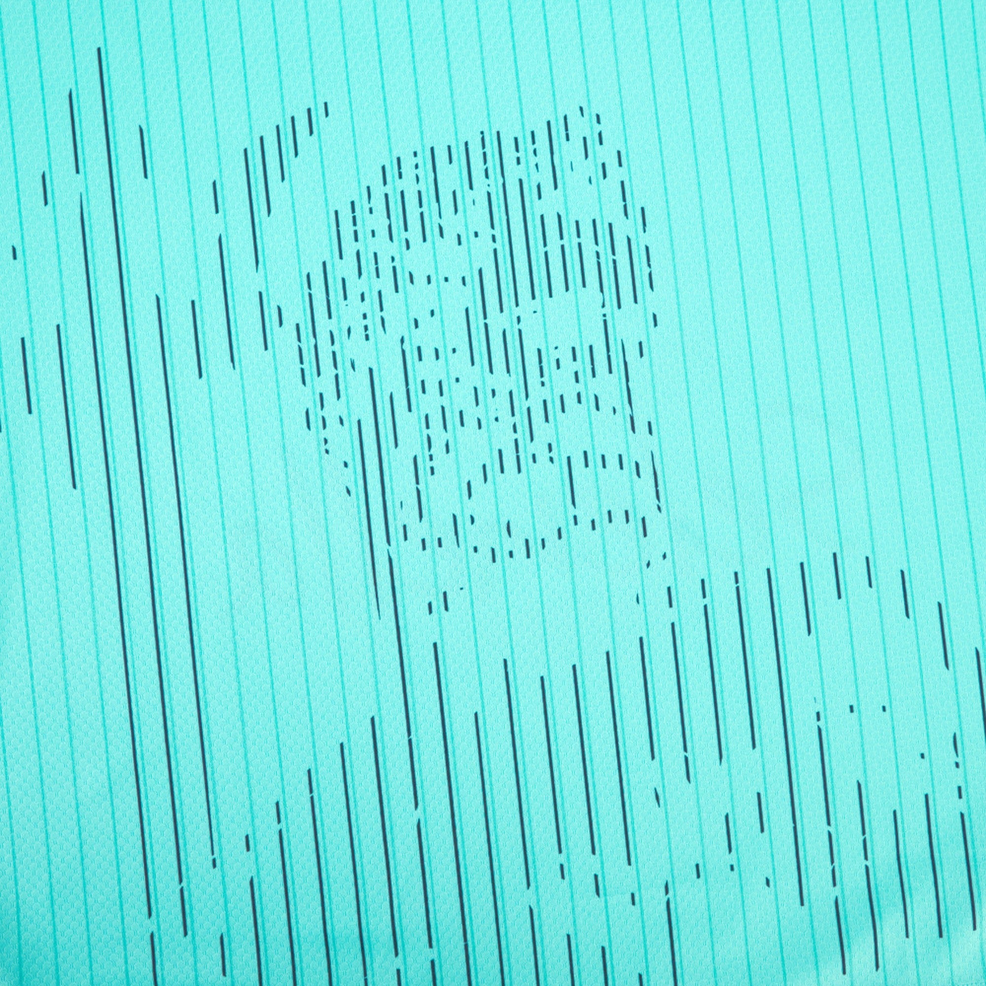The bright turquoise colour is enhanced by a subtle tone-on-tone pinstripe pattern, with contrasting details on the collar and sleeve cuffs. The slim fit and Eco Micromesh fabric ensure maximum comfort and breathability.