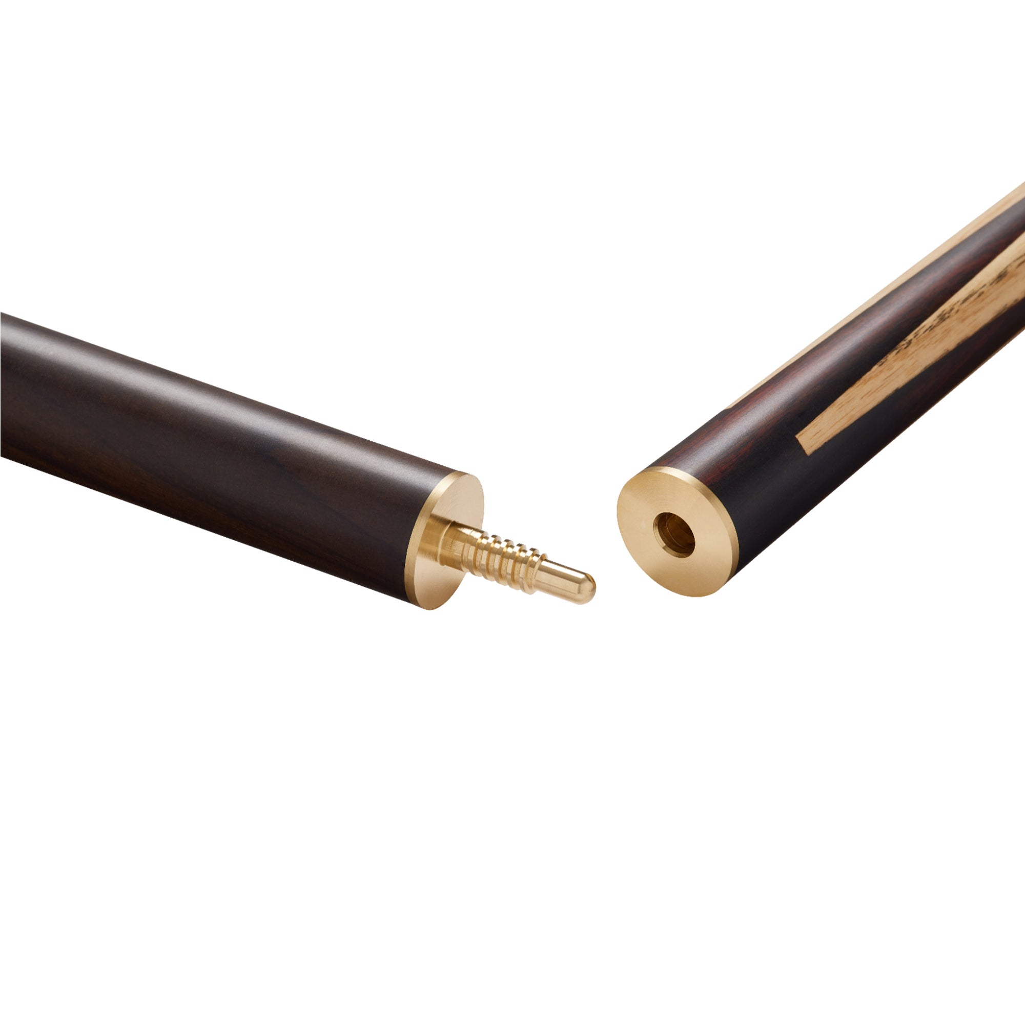 3 piece (2 joints) ash snooker cue with Rosewood butt and natural veneers. Brass thread joint with brass ferrule, hard leather 8.5mm tip. Length 55".