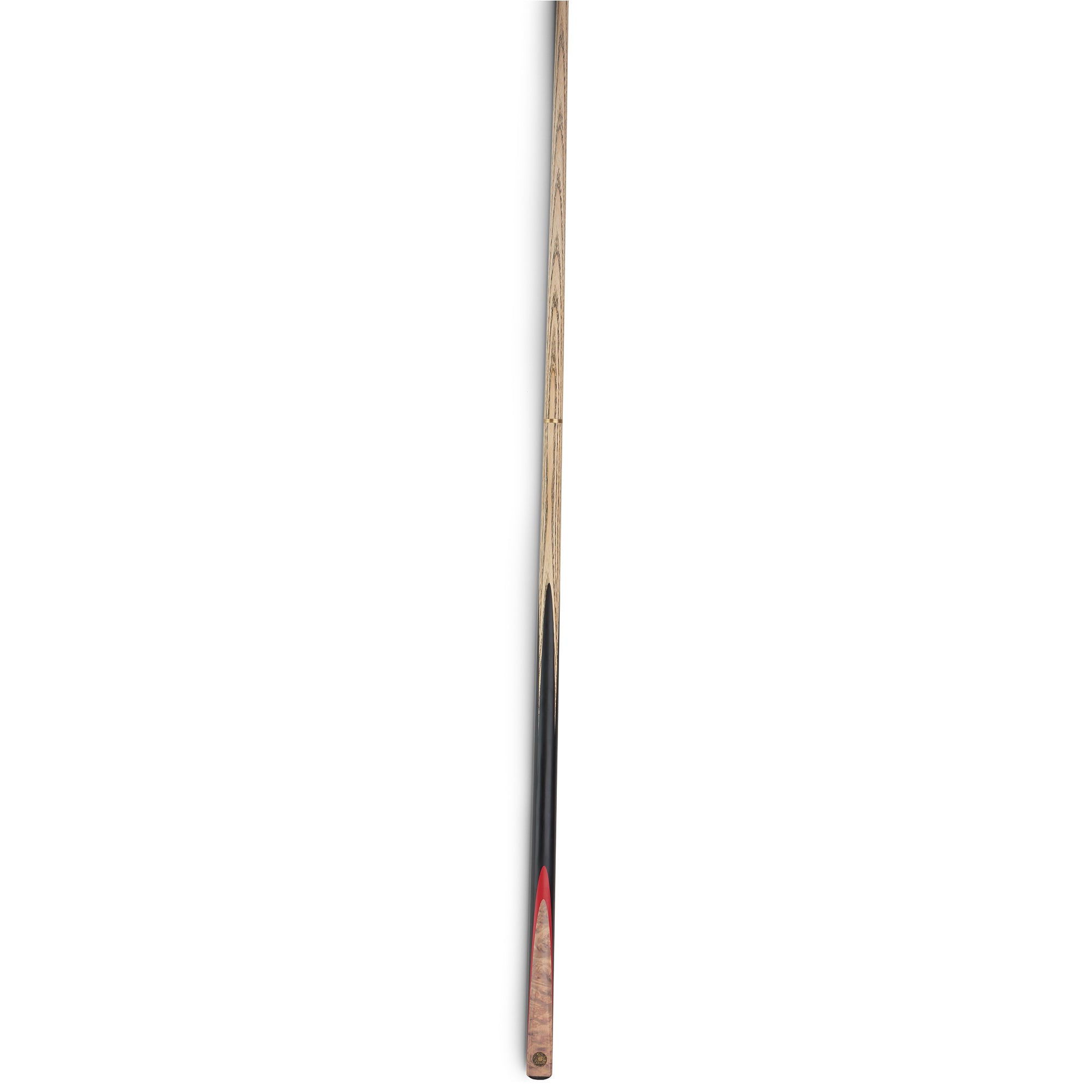 This 57” two piece cue is manufactured from sports grade Ash to offer superb value for money. The cue features a simulated hand spliced Ebony butt decorated a with decal of Thuya Burr with a Red Veneer. The brass 'Cannon' joint is fitted in the center of the cue. The butt is finished with a brass Cannon disc and a protective leather butt pad.