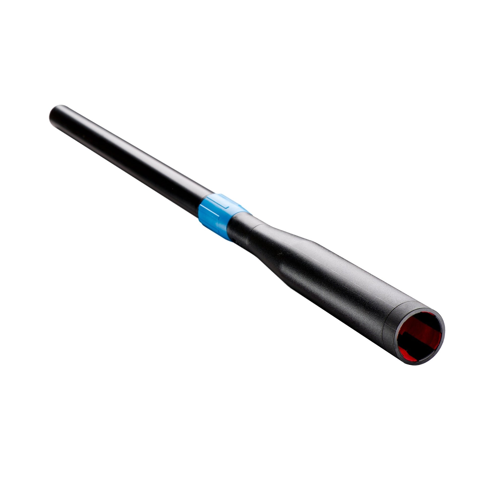 This extension will push on to any snooker cue of any make, however this style of extension is usually used on cues which do not have the facility to accept any form of screw on extension. For example one piece or centre jointed cues which do not have 'Butt End Joints' fitted. This extension is fitted by simply pushing the cue butt into the end of the extension which grips the cue firmly in place. The extension is constructed of aluminium and ABS plastic and can be extended by pulling the end away from the cue, and then quickly locked at any position required by gently twisting the blue collar. The extension measures 29 1/4” in length, but when the cue butt is inserted it can extend the length of the cue by any amount between 21 1/2” and 35”.