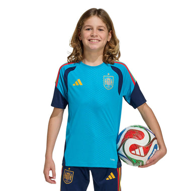 An embossed design element on the front panel adds a touch of style, while the iconic mesh chest inserts provide additional ventilation for comfort. And the adidas logo and federation crest are proudly displayed, symbolising a connection to the rich heritage of Spanish football.