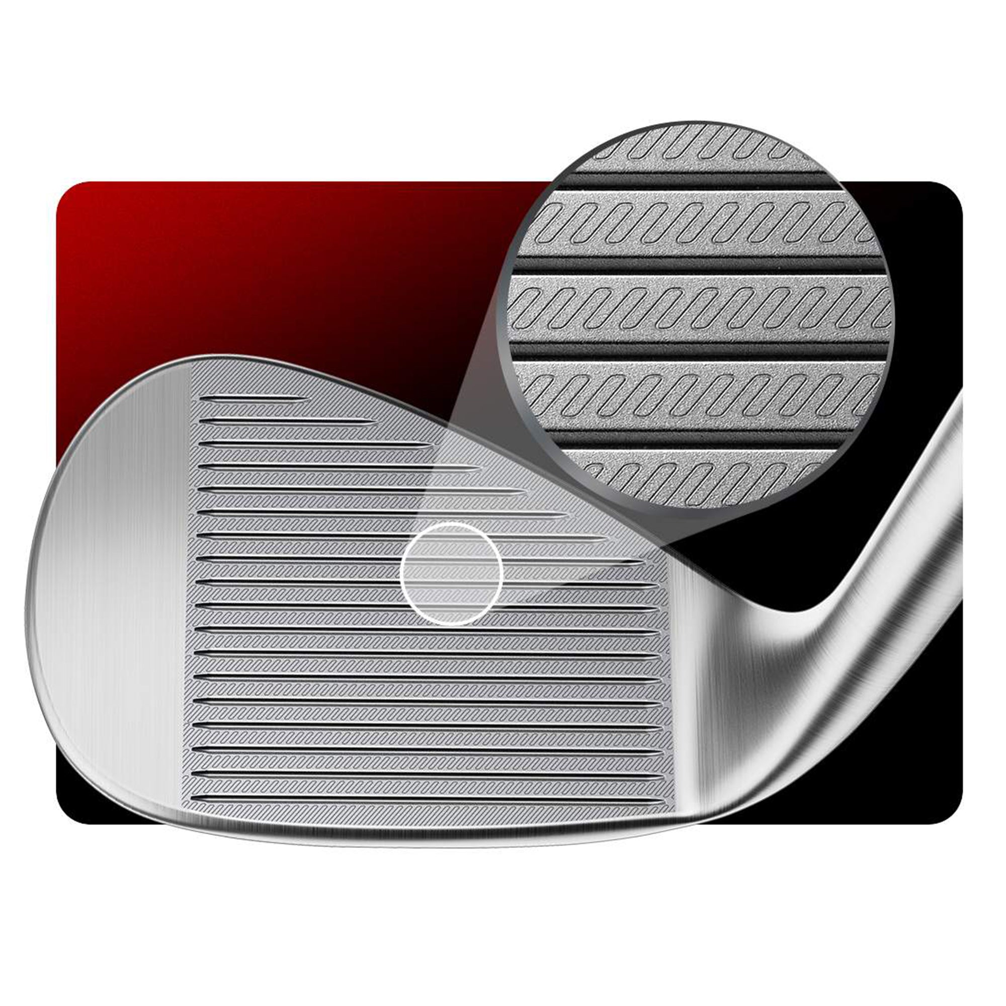 MG5 wedges utilize Spin Tread Technology and a RAW face finish to help you maintain more spin and control, even in wet conditions. Just like tire treads keep your car connected to the road, Spin Tread Technology redirects water away from the clubface and increases friction with the ball at impact.
