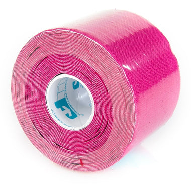 Ultimate Performance Kinesiology tape (pink) can be applied across muscle groups to support muscle recovery, improve blood circulation, and allow muscle injuries to heal. By pushing the flow of blood and lymphatic fluid, muscle inflammation can heal and protect from further muscle injury whilst still allowing an athlete full movement and motion. Other colour varieties are available.