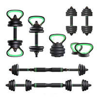 The Urban Fitness 6 in 1 dumbbell set, is a comprehensive exercise set that can be configured into multiple items, easily adjustable into a Kettlebell, Pair of Dumbbells, Barbell or Push up Stands.