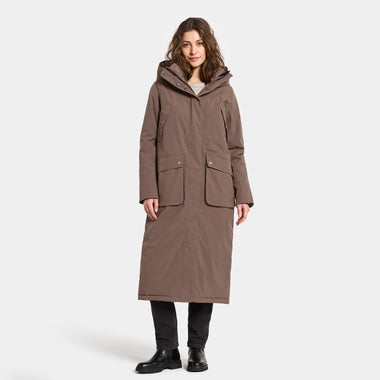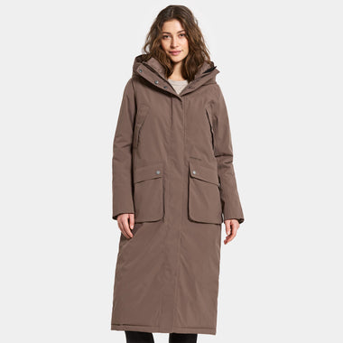 Melody is a long and padded parka with a straight fit, perfect for both style and function in everyday life. It is water- and windproof with taped seams and made from a breathable material, making it ideal for all weather conditions. The parka features an adjustable hood and a two-way front zip, covered by a placket with buttons for extra protection.