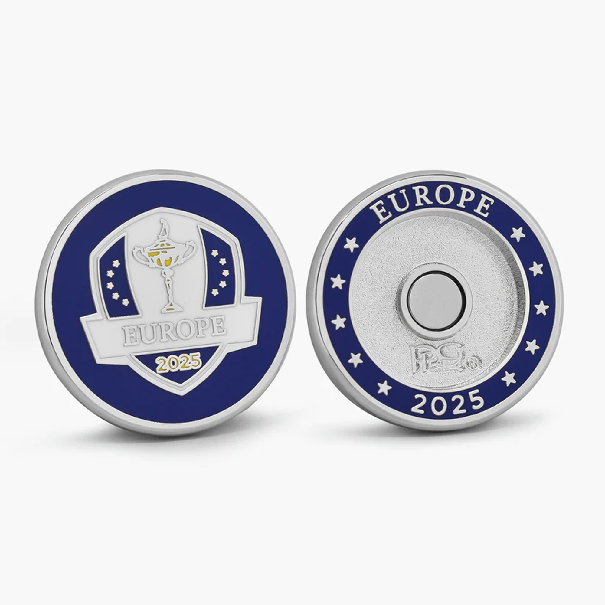 Official 2025 Ryder Cup Team Europe duo ball marker designed for the players and caddies at Bethpage Black.