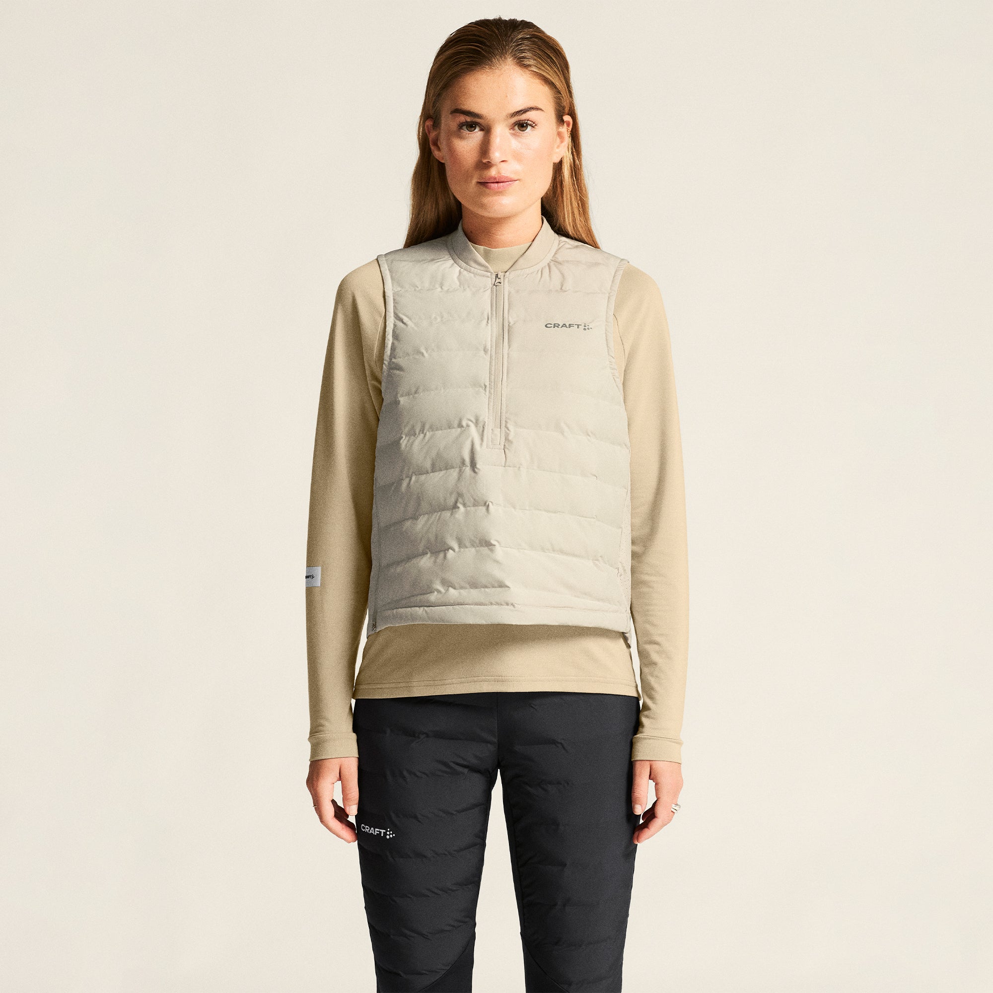 This advanced half-zip vest features a wind-protective front and upper back with light insulation in a bonded 3-layer design, providing excellent warmth and comfort in cold conditions.