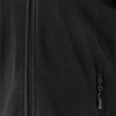 Polyester was used in the manufacture of the fleece jacket. Its design is defined by a chich knitting pattern and a welt pocket. Conveniently, the closure can be accomplished by using the covered zip.
