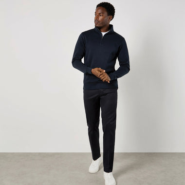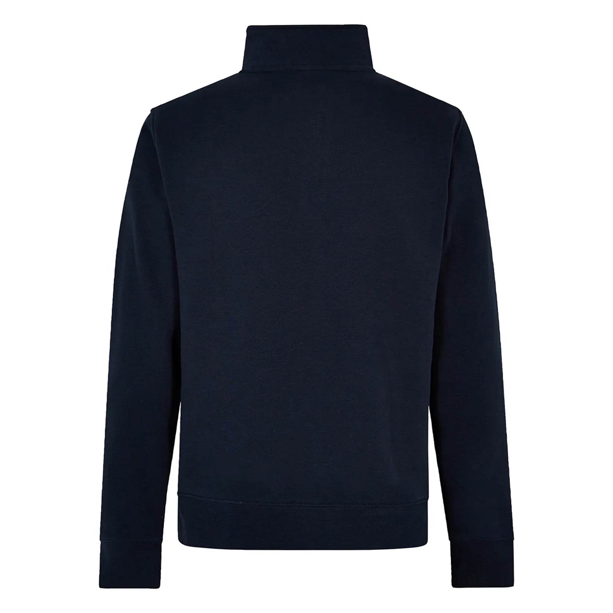 This regular fit sweatshirt features a cadet collar and a quarter zip, making it a convenient throw on layer in both corporate and casual environments.