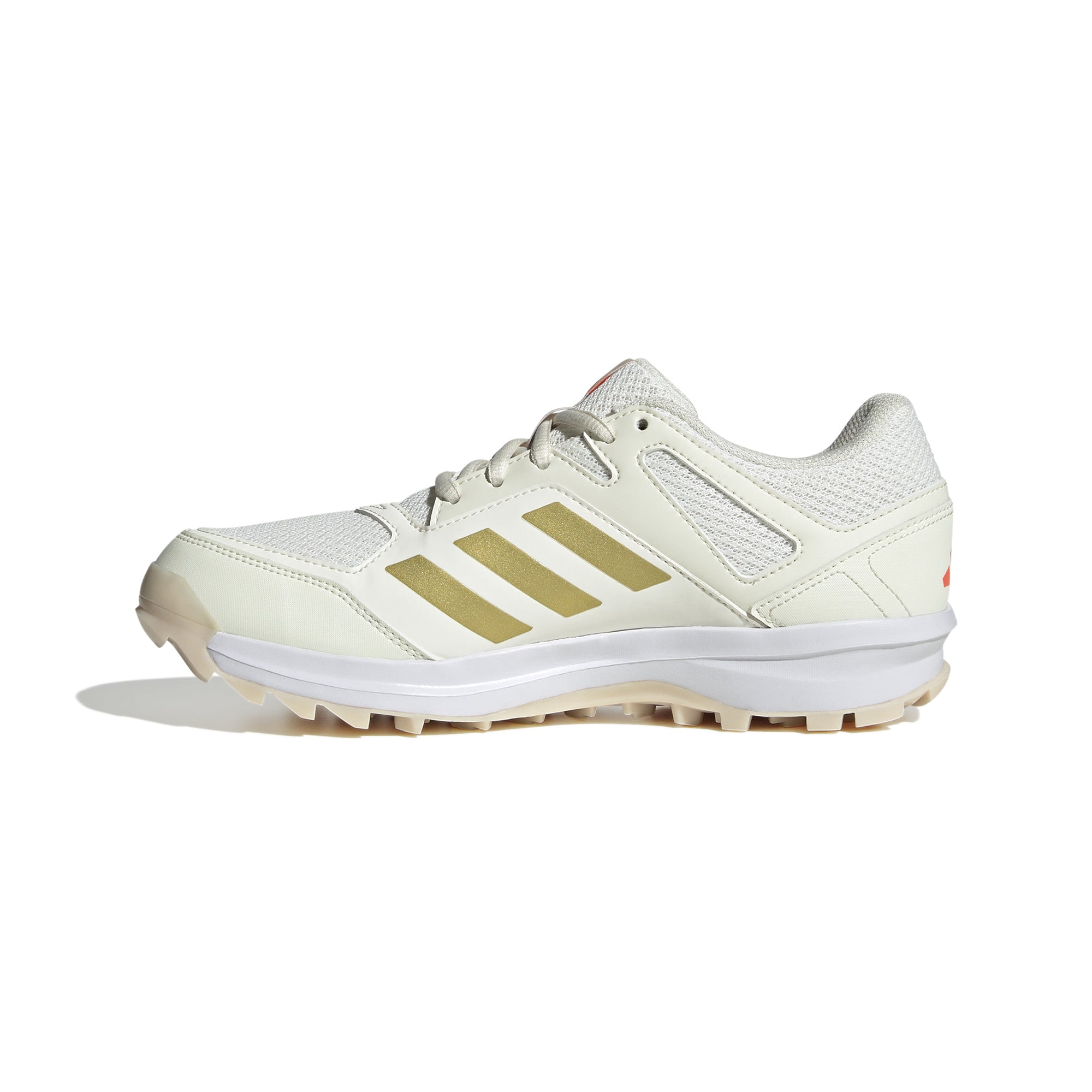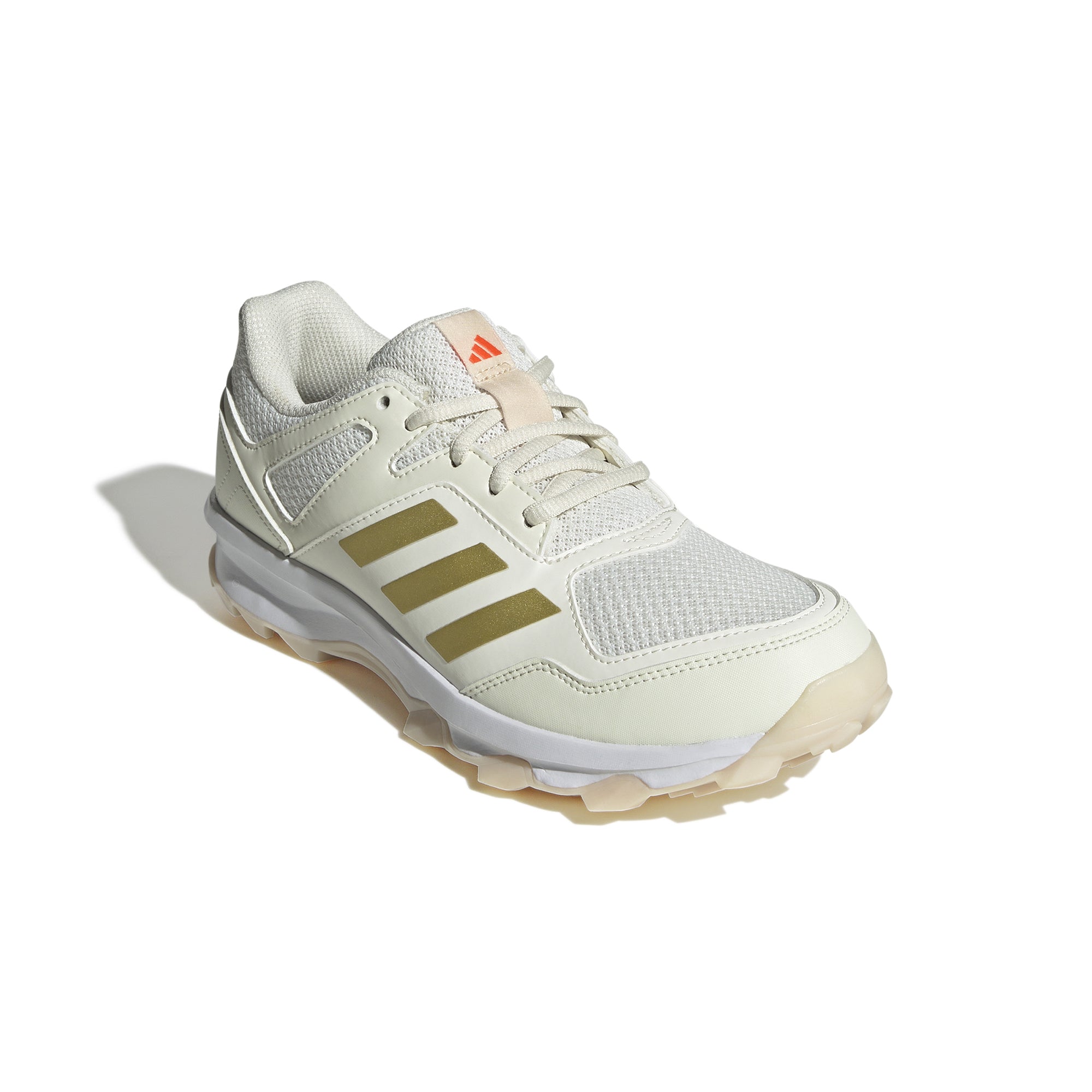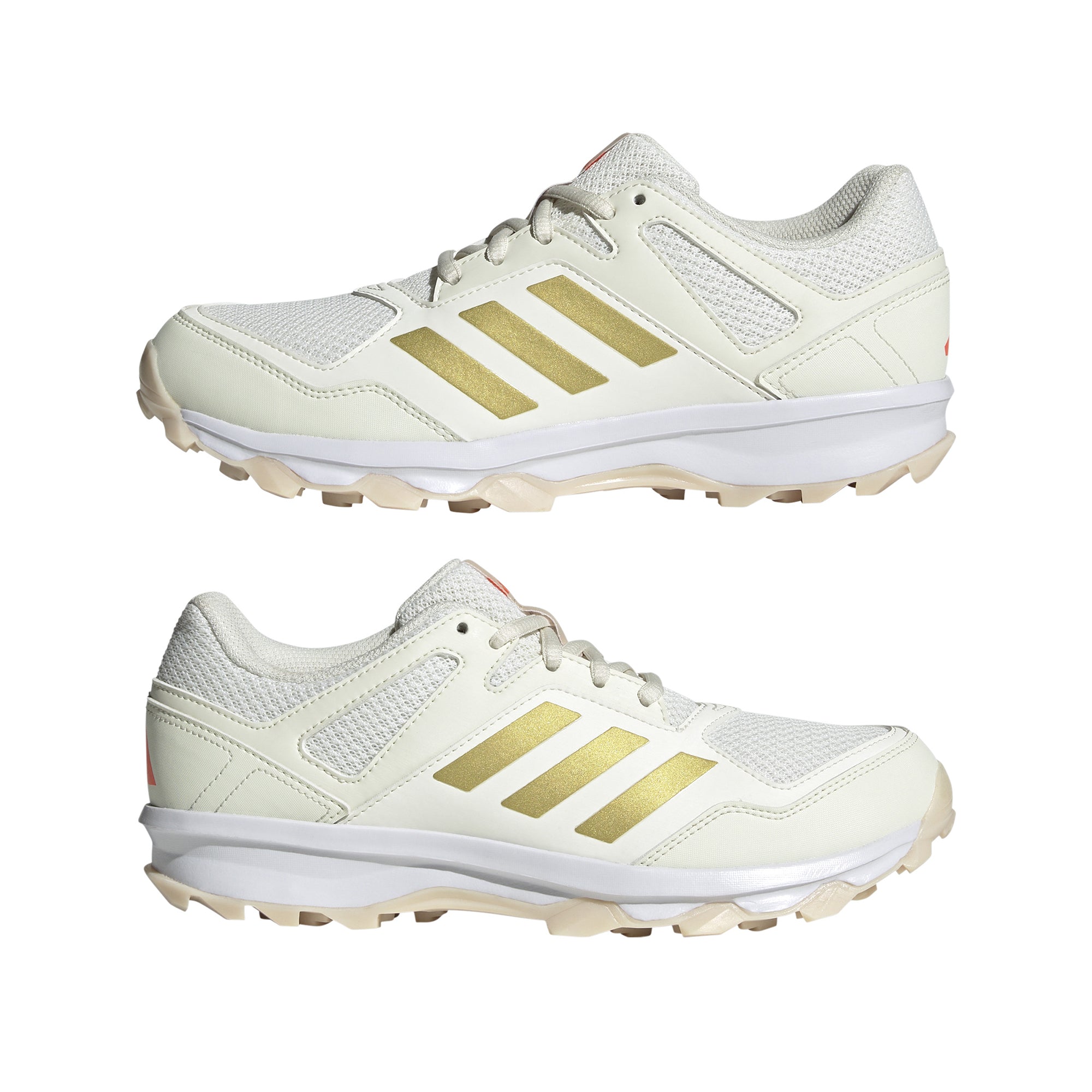 Designed with a breathable mesh upper to help keep you cool on the pitch, the shoes feature synthetic overlays that offer added support for lateral movement. Foil-covered layers help keep feet dry, while lugs on the moulded rubber outsole provide optimal grip as you dribble, pass and shoot.