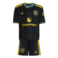 A kids' away kit that remixes classic adidas x Man Utd DNA.