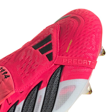 Step onto the pitch with confidence in the Predator Elite Fold-Over Tongue Soft-Ground Football Boots. Designed to raise your game, this footwear combines heritage with cutting-edge technology. With a regular fit and lace closure, these boots are endorsed by professional players, helping you perform at your best. Their fold-over tongue creates a smooth striking surface, supporting your accuracy through each kick. The innovative Nanostrike+ mesh offers feather-like lightness, with integrated rubber grip elements that support striking precision in both dry and wet conditions.