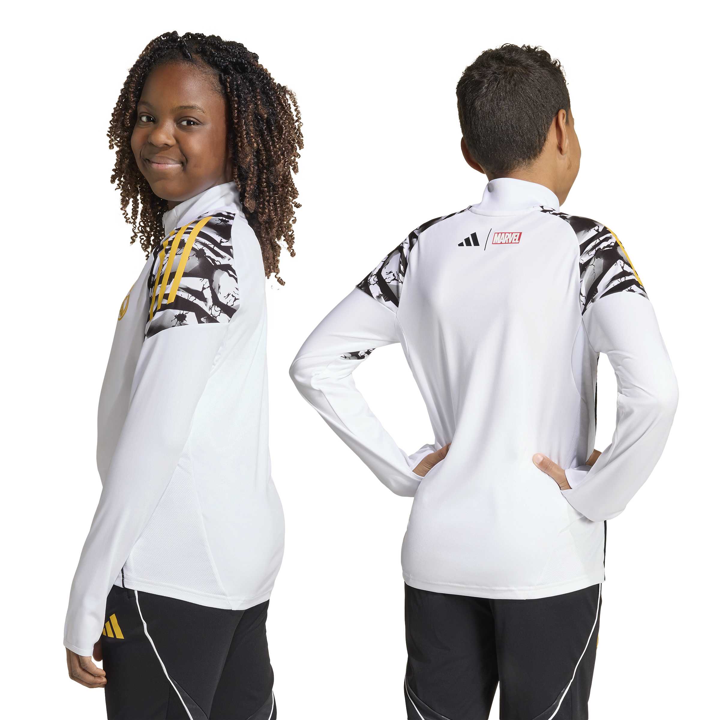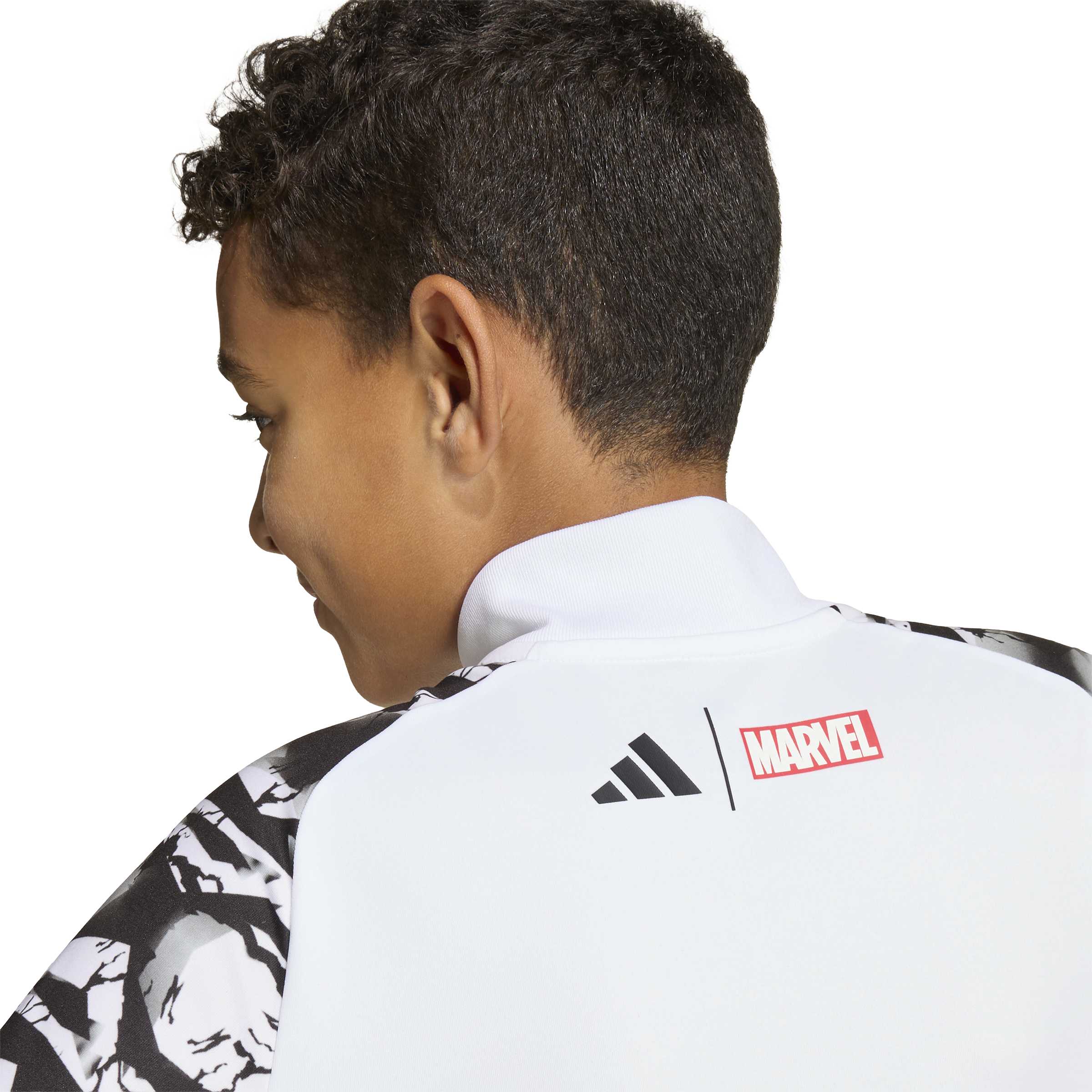 This juniors' football top combines the iconic Avengers Marvel theme with the same performance gear worn by the club's elite players. The slim fit provides a streamlined silhouette, while AEROREADY technology actively manages moisture to keep you comfortable and focused during intense warm-ups.