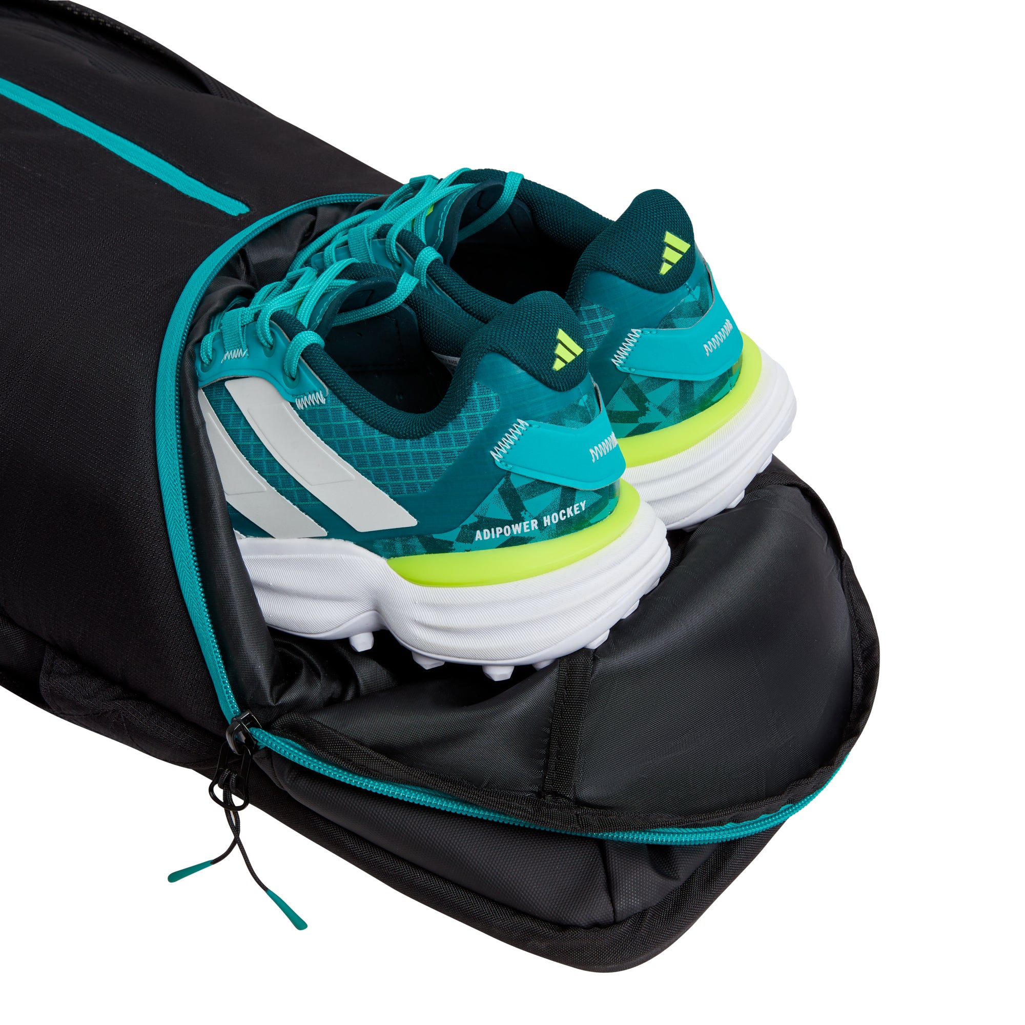 Large hockey stick bag for up to six 38.5" sticks and multiple equipment compartments.