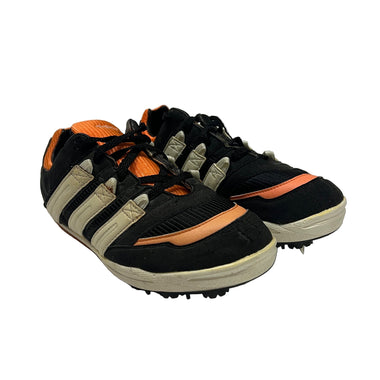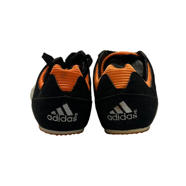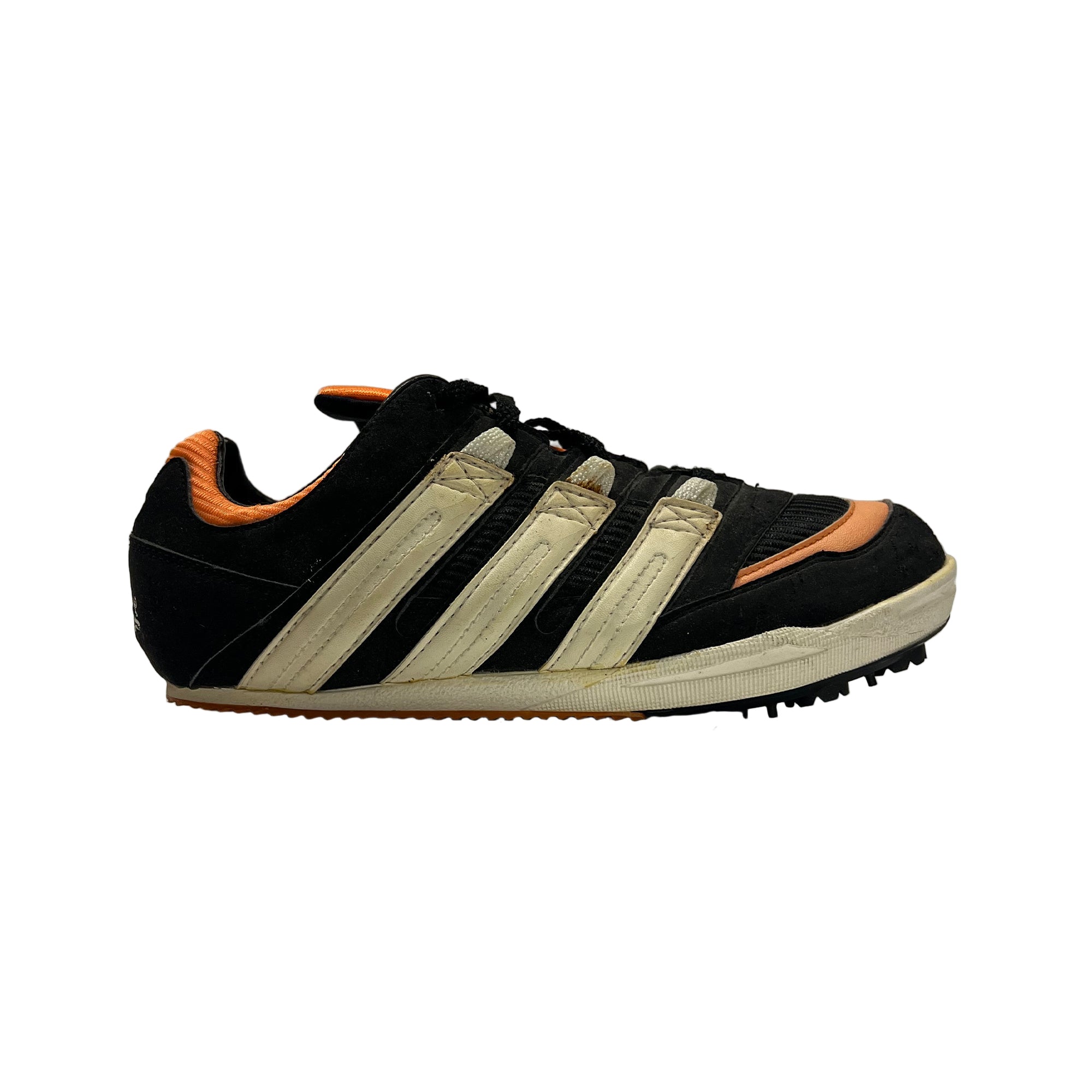 These Adistar Long Jump shoes are from an older collection and show signs of use, including marks and missing spikes on one shoe. They are offered at a significant discount, making them an excellent choice for budget-conscious athletes.