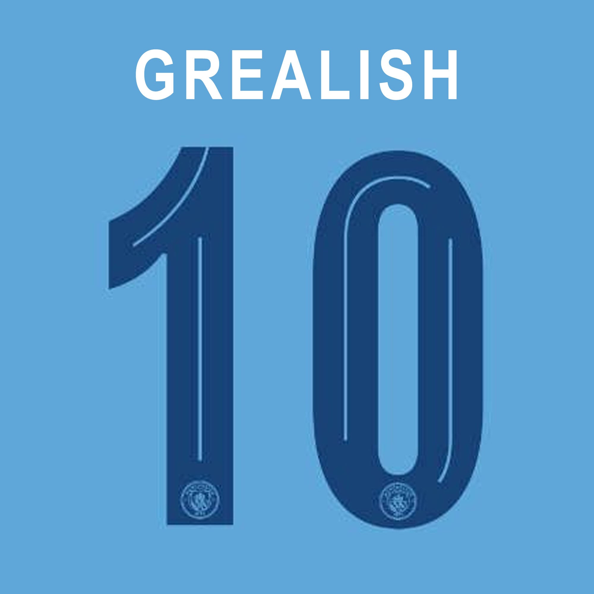 Official Grealish 10 Manchester City home shirt print used in Cup & European games.