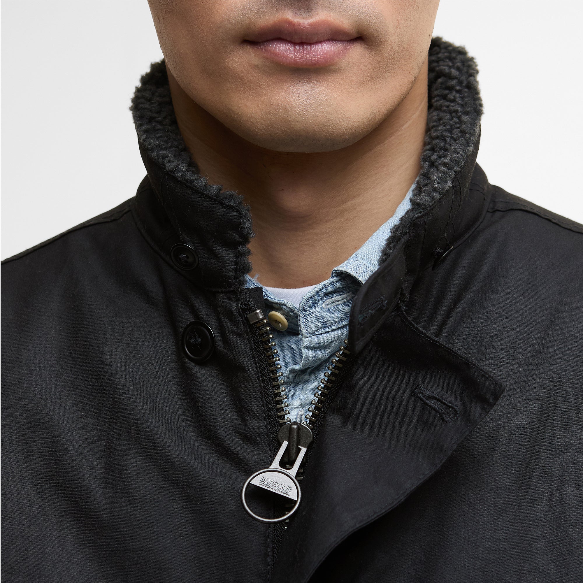 Pull on the Barbour Mayburn Waxed Jacket, no matter what the forecast has in store. Crafted from waxed cotton and finished with a shawl fleece collar for added warmth, this jacket keeps out the chill without compromising on style.