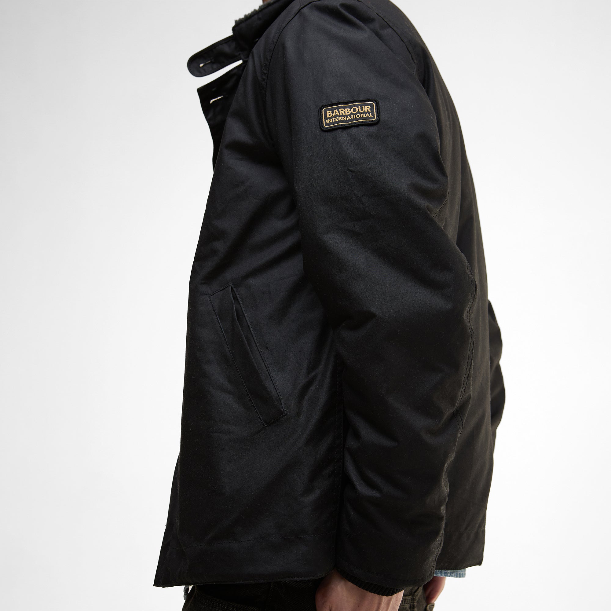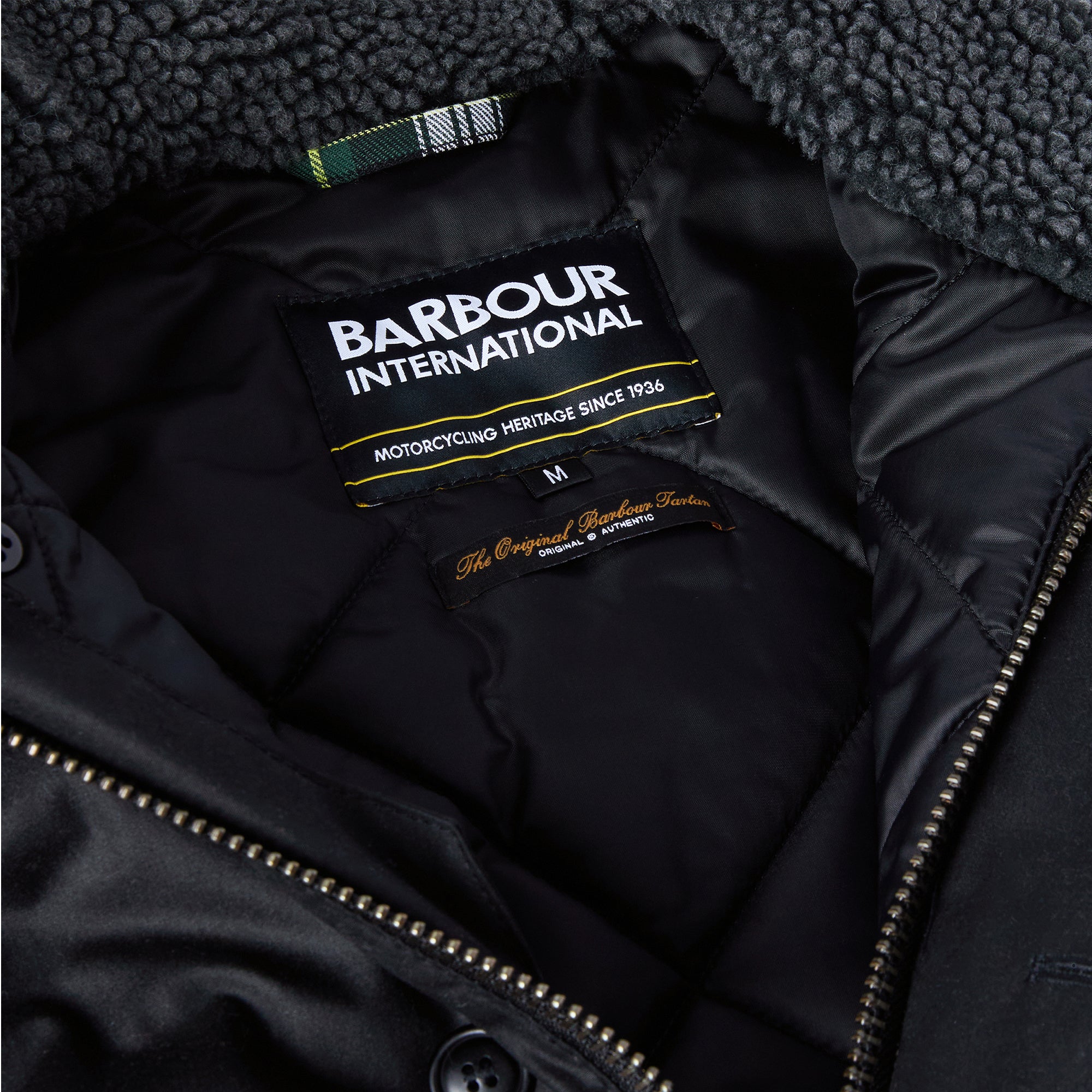 • Barbour International black and old gold woven badge to wearers left sleeve.